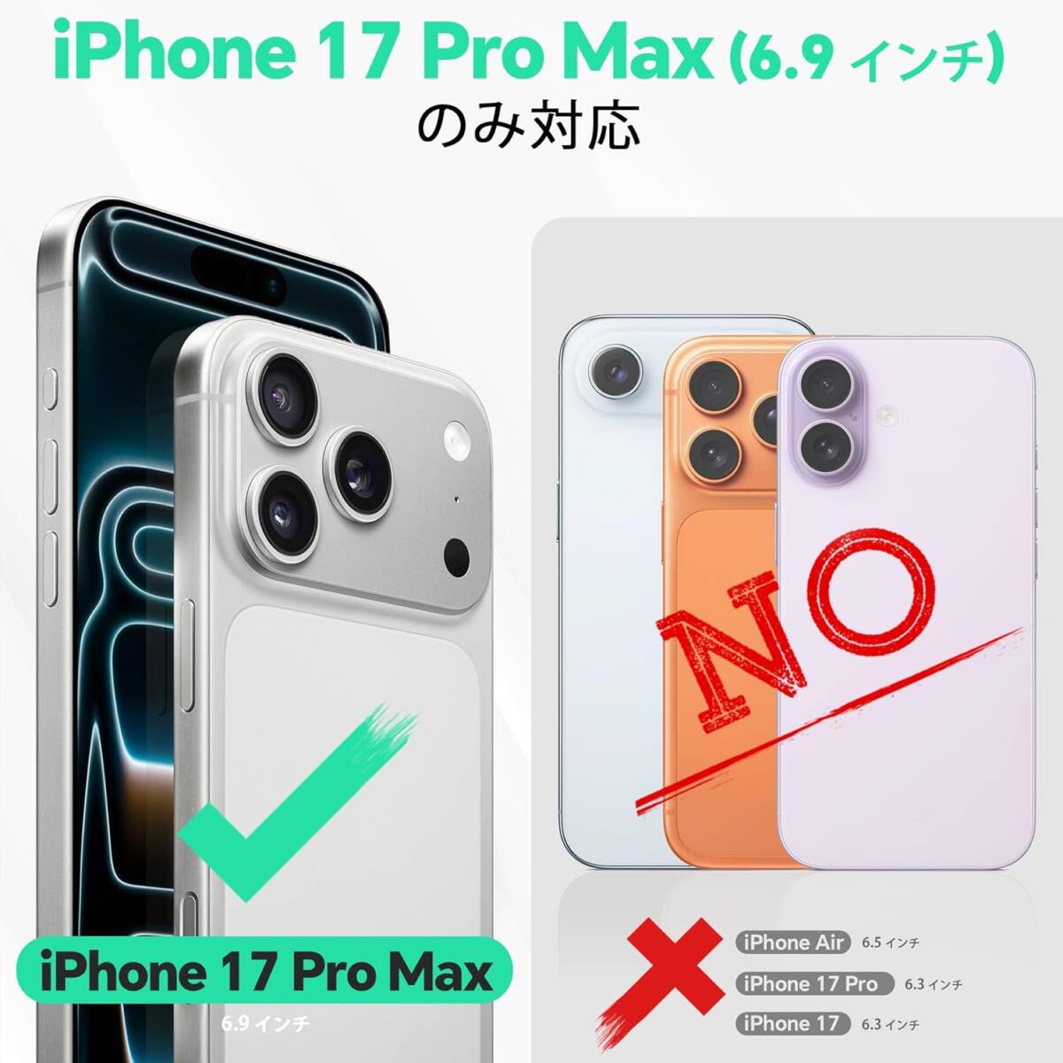 | 対応電話モデル | iPhone 17 Pro Max 5G (6.9インチ 2025年発売), あいふぉん17プロマックス, アイフォーン17プロマックス |