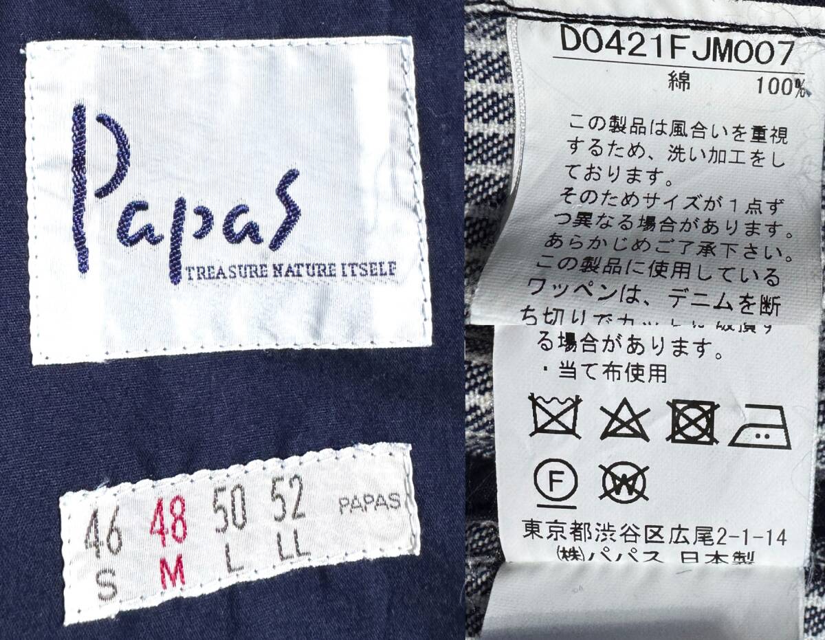 | 商品説明 | 【商品名】 極美品 参考定価6.8万 Papas パパス ヒッコリー デニムカバーオール ジャケット ストライプ ロゴ刺繍ワッペン 日本製 【商品説明】 Papas パパスのヒッコリー デニムカバーオールです。 人気の高いPapas の一着。 雰囲気抜群のヒッコリーデニム生地を使用したカバーオールです。 胸。袖の豪華ロゴ刺繍ワッペンがデザインのポイントになります。 適度な厚みで幅広いシーズンお召し頂けます。 Papas ならではの上質な素材感、縫製で完成度の高い仕上がり。 着用感の少ない極美品になります。 この機会に是非ご検討下さい! 【SIZE】...48(M) ※一般的なL相当 着丈 75cm 身幅 61cm 肩幅 50cm 袖丈 64cm(肩先~袖先) ※多少の誤差はご了承下さい 【素材】 綿 100% 【コンディション】 着用感の少ない極美品です。 目立つダメージ、汚れはなく綺麗な状態になります。 着古し感は少なく、まだまだ長くお召し頂ける状態のいいお品物です。 ※画像を参考にして下さい。 ※状態の確認は慎重に行っていますが、 細かい織傷や小さい糸飛び、僅かな薄汚れ等は見逃している事があります。 古着にご理解頂ける方、中古品のお取引にご理解頂ける方のみの入札をお願いします。 【配送料金(ゆうパック60)】 北海道 789円 :北海道 東北 995円 :青森県 岩手県 秋田県 山形県 宮城県 福島県 関東、信越 1159円:茨城県 栃木県 群馬県 埼玉県 千葉県 東京都 神奈川県 山梨県 新潟県 長野県 北陸、東海 1292円:富山県 石川県 福井県 静岡県 愛知県 三重県 岐阜県 近畿 1399円:滋賀県 京都府 大阪府 兵庫県 奈良県 和歌山県 中国、四国 1399円:鳥取県 岡山県 島根県 広島県 山口県 香川県 徳島県 高知県 愛媛県 九州 1399円:福岡県 佐賀県 大分県 熊本県 長崎県 宮崎県 鹿児島県 沖縄 1408円:沖縄県 |