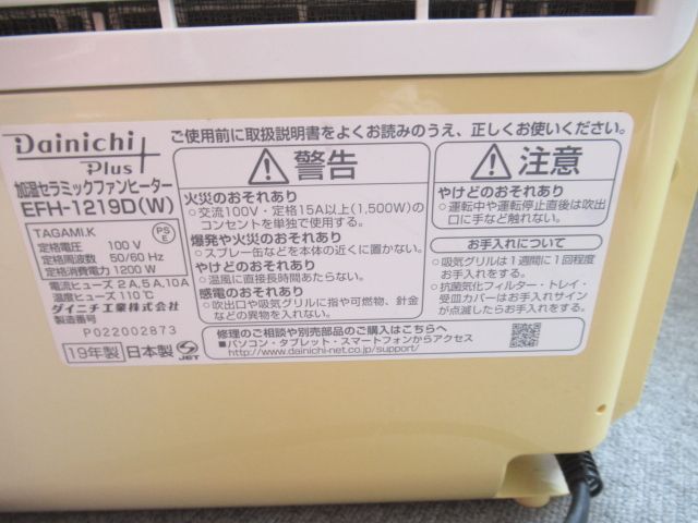 | *** ダイニチ 加湿 セラミックファンヒーター EFH-1219D 2019年製 *** |