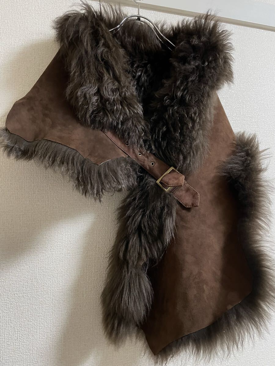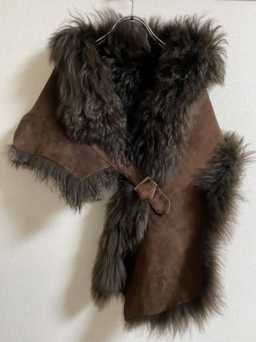 panagi goa g.o.a sheepskin lamb mouton gimmick shawl Stall パナジ ゴア レザー ラム ムートン ギミック ストール マフラー ベスト ポンチョ archive アーカイブ フェアリーグランジ 00's y2k