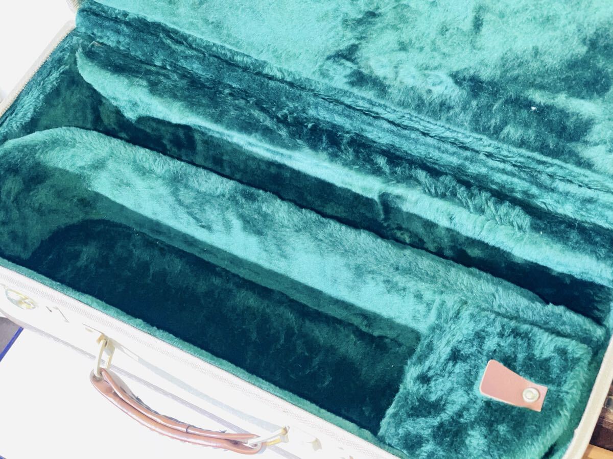 Jerome Callet/ジェロームカレのトランペットが入っていたというハードケースです。念のため手持ちの楽器(YAMAHA YTR2310)を入れてみたところピッタリでした。ロック機構は問題ございませんが、鍵は付属しません。