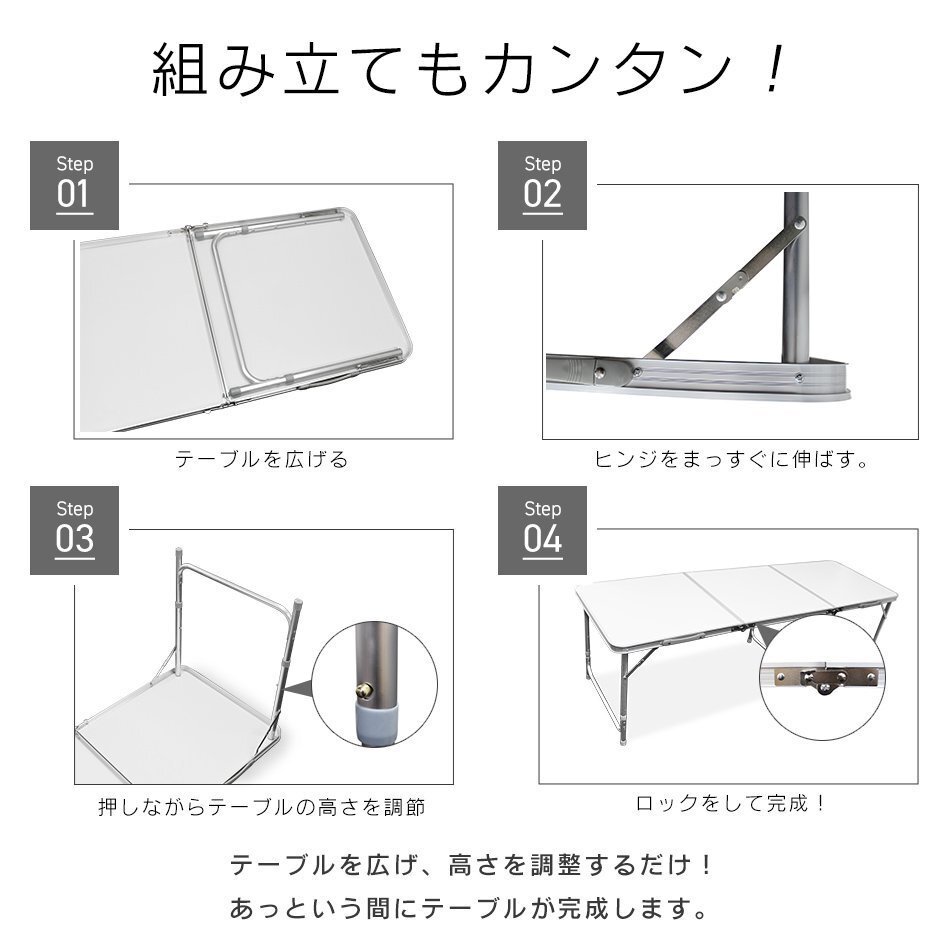 | かんたん組立の折りたたみ式アウトドアテーブル(4~6人用)です。 コンパクトサイズの180cm×60cm!! サビに強いアルミを使用! 天板には防水加工が施されています。 必要のない時は折りたたんで収納できる! 取っ手付きで持ち運びもラクラク♪ 高さは「ハイスタイル」「ミドルスタイル」「ロースタイル」の3段階調節。 お好みや用途に合わせて使い分けることができる嬉しい仕様♪ キャンプ、バーベキュー、お花見などにとても便利! ■商品コード:A61C002 ■商品仕様 カラー:ブラウン サイズ:(約)幅180×奥行60×高さ55/62/70cm 収納サイズ:(約)60×60×6.5cm 重量:(約)7.2kg 耐荷重:(約)20kg ■内容 テーブル本体、パラソル固定パーツ×1 ■注意事項 ・初めてご使用の場合、耐久性を高めるために天板がフラットにならず山なりになっております。 適度な力で上から押していただくと改善されますので、お試しください。初期不良ではございません。 ・海外製品で、簡易梱包での輸入のため風防に擦れや多少の小キズなどがある場合がございますが、 商品自体には問題ありませんのでご了承下さい。 ・商品は、モニターによって色合いが異なって見える場合があります。 ・仕様・デザインは改良のため予告なく変更することがあります。 ■保障期間 7日間 ※商品到着後7日以内の初期不良・破損のみご対応させていただきます。 【新品未使用品です】 |