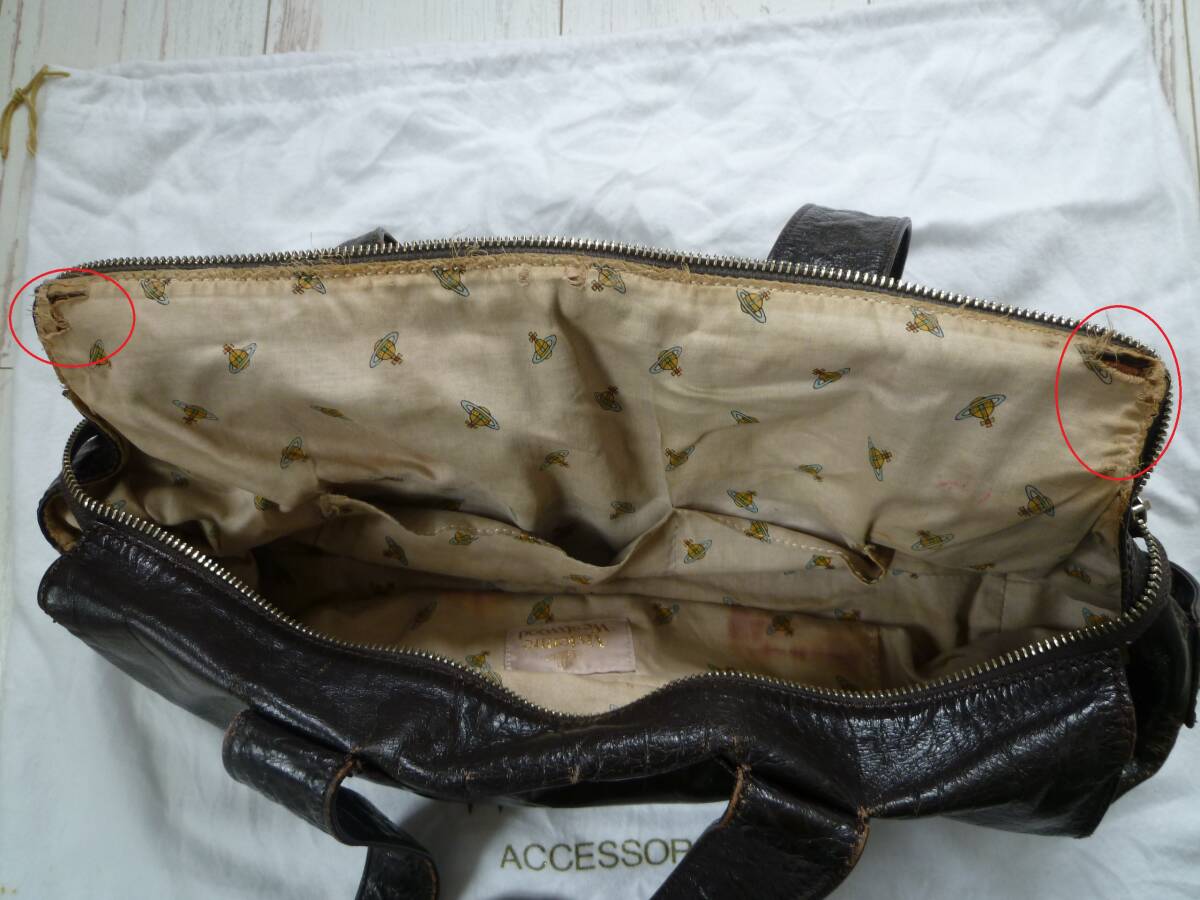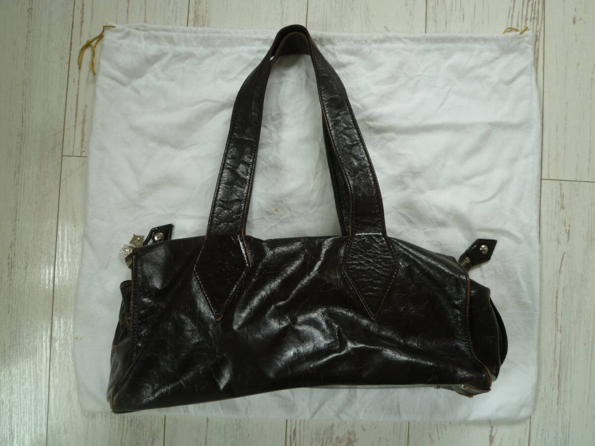 ◆状態 ユーズド品 難あり品 汚れ、革禿げ、破れ箇所あり スナップボタン 破損 収納袋あり 汚れあり ◆実寸 36㎝×20㎝(高)×まち12㎝ ◆カラー ブラウンベース(茶) ◆素材 牛革 レザー ◆原産国 不明 ◆オーブ、レッドレーベル、オリゾンティ、ユーズド、リサイクル 程度ランク 「G」 程度のランク評価について A 新品・未使用品。タグや付属品が付いているものもあり B 試着や、数回程度の使用。コンディションは全体的に非常に良い C あまり使用していないので、コンディション全体的にかなり良い D 多少使用感はあるものの、コンディションは全体的にまあまあ良好 E 使用感はありますが、通常の使用で支障のないレベル F 若干の難あり。オフタイムの使用や、細かい点を気にされない方にお勧め G 難有り品。コンディションの問題をご理解いただける方に (注)USED品への入札は、使用感をご了承の上、お願い致します 。 | |||