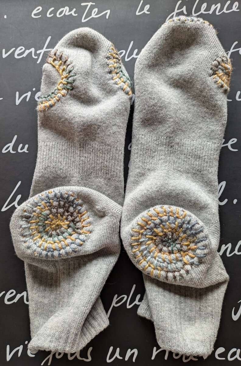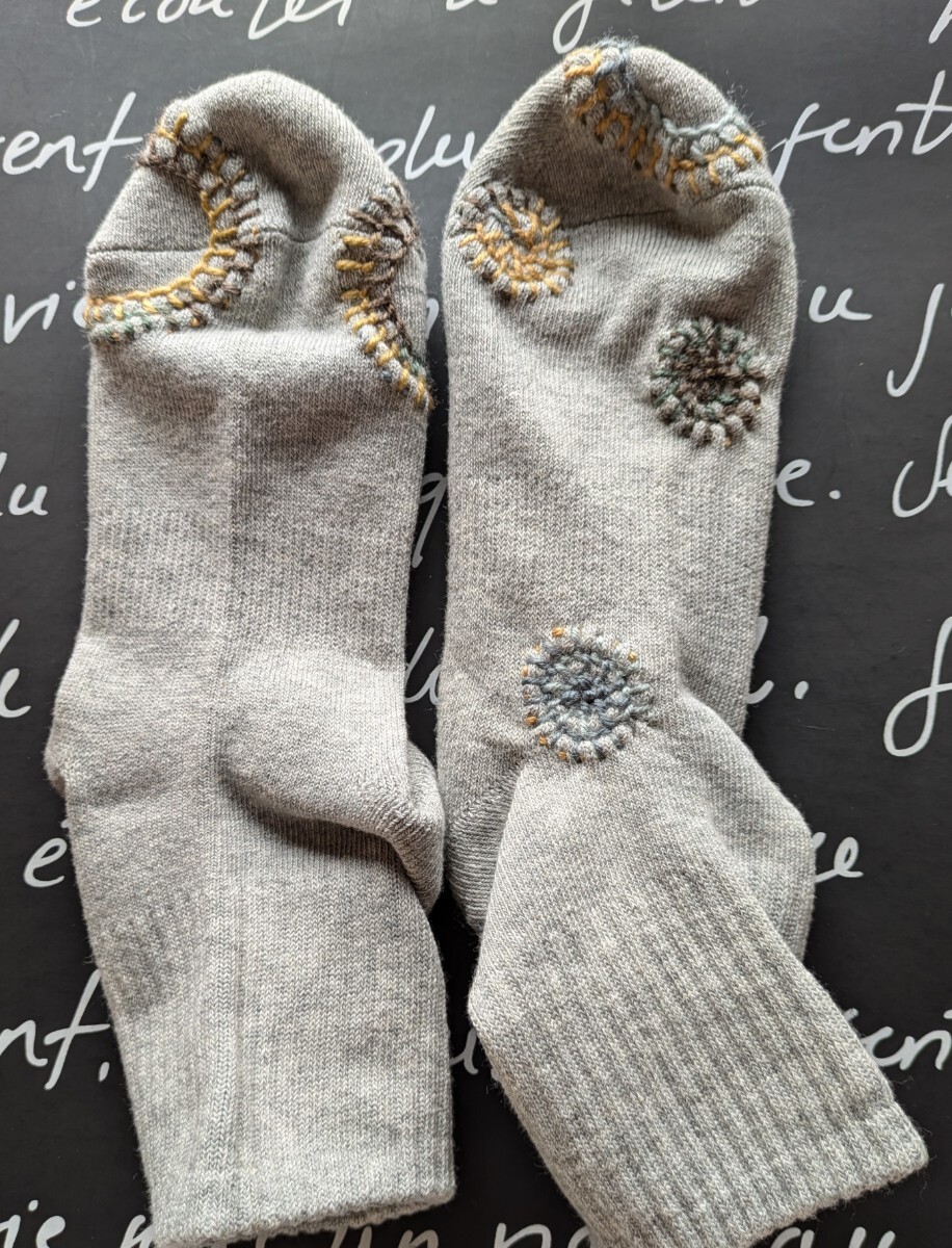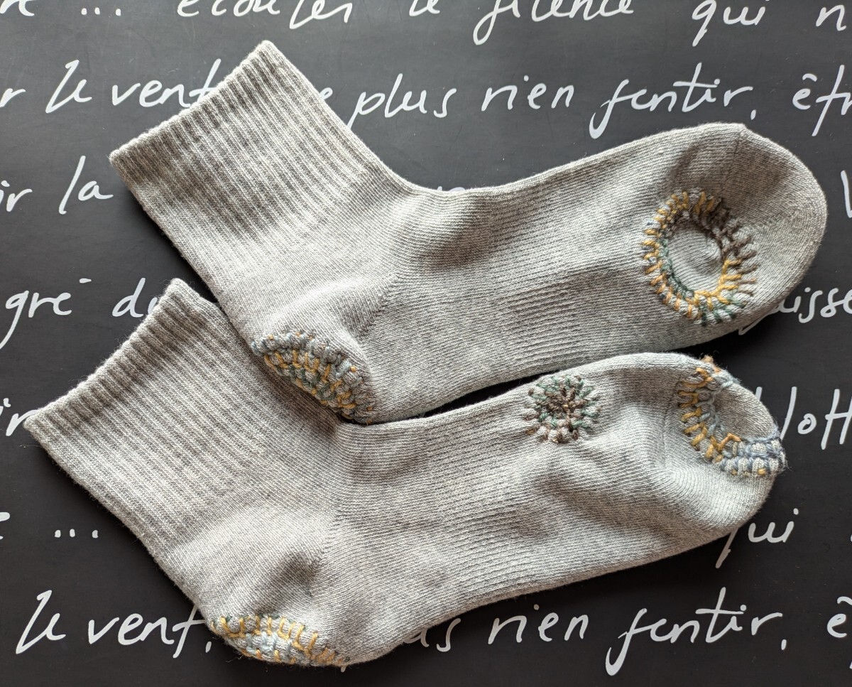 無印良品のパイル地ソックス(新品・グレー)に履いていると自然に傷む爪先やカカトにあらかじめダーニングを施してみました。| 出价者 | 信用 | 价格 | 时间 |