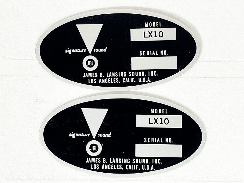 JBL LX10 プレート 2枚です。 こちらは複製品となります。 複数ございますので、同等品の発送となります。 ・サイズ:62.7×31.7(mm) |