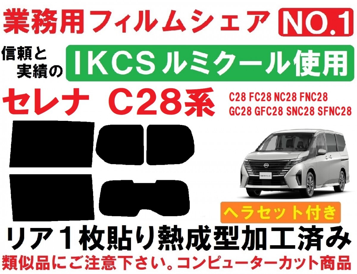 C28系セレナ用『IKCSルミクール使用』リア1枚貼り成型加工済みフィルムリア5面セットです。(専用施工液付き) ・信頼の品質と実績で永い間業務用フィルムとして選ばれ続けているIKCS製品です。 ・業務用フィルムの中で最も信頼性の高い、ベストセラー商品です。 ・詳しくはIKCS株式会社HPをご覧ください。 ※『ルミクール』は当店でも 施工実績・販売実績NO.1の超人気商品です。 令和4年12月~ C28系セレナ(C28 FC28 NC28 FNC28 GC28 GFC28 SNC28 SFNC28)に適合します。 ※画像3、インテリジェントルームミラー(メーカーオプション)の有無でガラスの形状が異なります。落札後、ご指定下さい。 ※適合等 ご不明な点など有りましたら、お気軽にご質問下さい。 ◇◆◇当商品には、画像2のヘラセットが付属します◇◆◇ ■滑りの良いシリコンタイプのゴムヘラ スムーズに水切り(清掃)・貼り付け後の水抜きが出来ます。 実際の業務でも色々な物を試しましたが、シンプルなこの形状・このメーカー・このグレードの物が1番使いやすいです。 柔軟性が有りガラス(フィルム)に密着するため、フィルム折れも防げます。 ■使いやすい厚みとコシの有るプラヘラ 形状は似ていても各メーカーにより硬さ・厚みなど色々と有ります。 慣れていない方でも扱い易いように少々柔らか目の物になります。 ヘラ先にはフッ素樹脂加工のクロスを貼って有りますので、滑りが良くキズを防止します。 ■ワイプオール(不織布ワイパー) 布同様の丈夫さと紙の持つ吸水性を発揮。糸くずの発生が無く均一素材のため異物混入の心配が有りません。 施工前のガラスクリーニング~施工時にフィルムが触れる可能性の有るガラスの周りのゴム部品の拭き取り清掃~吸水等に大変便利です。 全て実際の業務に使用している物で、その中から使いやすい物を選んでいます。 ヘラセットがご不用の場合、フィルムのみの商品も有ります。こちら ◇◆◇精密コンピューターカット◇◆◇ 貼りやすさを最優先に各部のサイズ・形状など微調整し、改良を重ねた独自のデータを製作。 高精度な最新・大型カッティングプロッターによるカットで正確で滑らかなカットラインを再現しています。 ※施工業者だからわかる、貼りやすいサイズ・形状に仕上げています。 ◇◆◇リア1枚貼り成型加工済み◇◆◇ リアガラスの湾曲に合わせて熱成型加工して有りますので、平面に貼るのと同様にたるみが出ず1枚貼り出来ます。 ※最適な状態に成型加工して有りますので、ヒートガン(ドライヤー)等は不要です。 ◇◆◇専用施工液付属◇◆◇ 軽視されがちな施工液ですが、貼りやすさに大きく関わる部分になります。中性洗剤などで代用せず、必ず付属の専用施工液をご使用下さい。 濃度については車種・季節などにより変わりますので、個別にお知らせ致します。 国内シェアNO.1の『IKCSルミクール』を使用しています。 ルミクールは経年退色が極めて少ない着色加工技術はもちろん、安定した冷暖房効率をアップする熱線遮断効果や断熱効果、内装を守り日焼けを防ぐため、全てのフィルムで99%の紫外線カットを実現しています。 ガラスの飛散防止効果で高い安全性を保ち、ハードコートタイプなのでキズにも強いカーフィルムです。 改良を重ねながら 信頼の品質と性能で、永い間業務用フィルムとして選ばれ続けています。 ■フィルムの種類■ 可視光線透過率 3% NS-003HC 可視光線透過率 7% NS-008HC 可視光線透過率13% NS-015HC 可視光線透過率20% NS-020HC 可視光線透過率30% NS-030HC 可視光線透過率46% NS-045HC ■全商品、キズに強いハードコート・紫外線(UV)99%カットです。 ※可視光線透過率が低くなるほどフィルムの色は濃くなります。 サイドとリアで濃さを替えたり等、可能です。 部分的にフィルムが必要になった場合、単品販売も承ります。 他にもC28系セレナ用フィルム、各種出品中です。こちらもご覧ください。 ご不明な点など有りましたら、お気軽にご質問下さい。 | ||