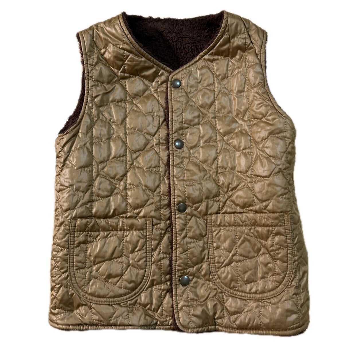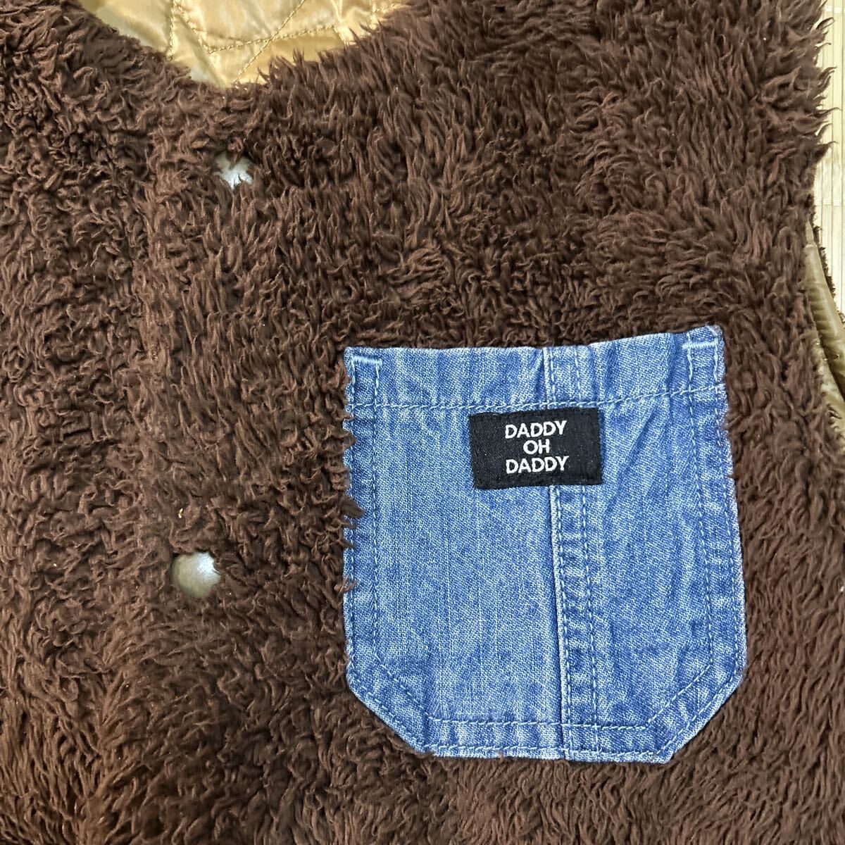 ダディオダディの男女兼用キッズサイズ150のベストです!リバーシブルになっています!もこもこの裏側の星柄デザインの方もかわいいです!登下校時の防寒着にもなりました!袖がないベストタイプなので、袖口もすっきりして娘も気に入って着ていました!特に目立った傷み等見られません。見た目以上に着せるとかわいいです!