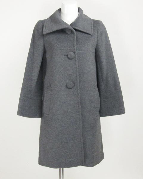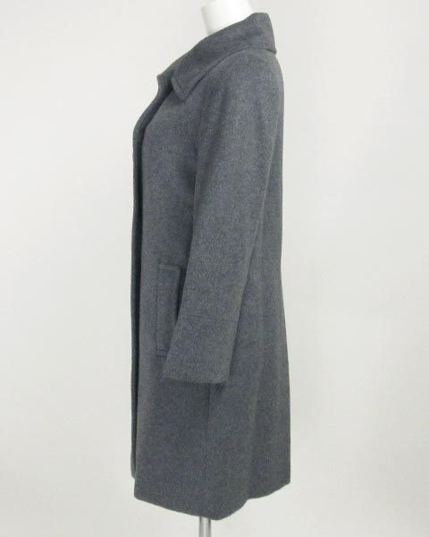 | アンゴラ×ウールの滑らかな質感がお上品な一枚。大きなくるみボタンがさりげないアクセントになっています。お袖は袖口に向かって広がっていて、身頃もナチュラルなAラインシルエットを描いているので、シンプルながらもフェミニンな雰囲気を演出してくれます。 |