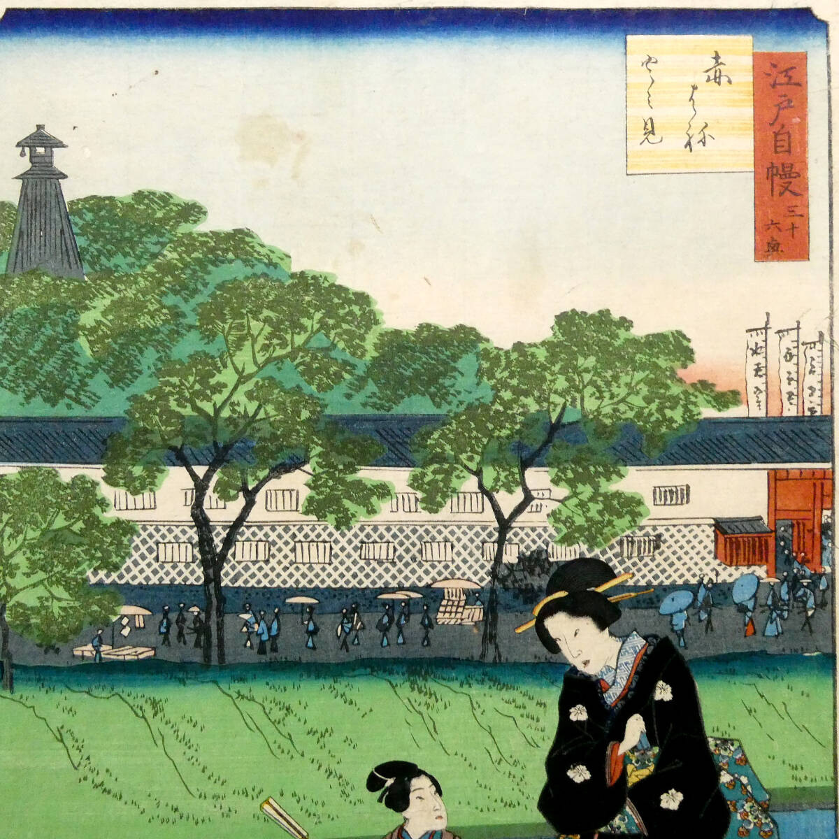 ■ 歌川国貞 &広重二代 江戸時代 木版浮世絵 「江戸自慢三十六興 赤はね火之見」 有馬家上屋敷 水天宮 ■