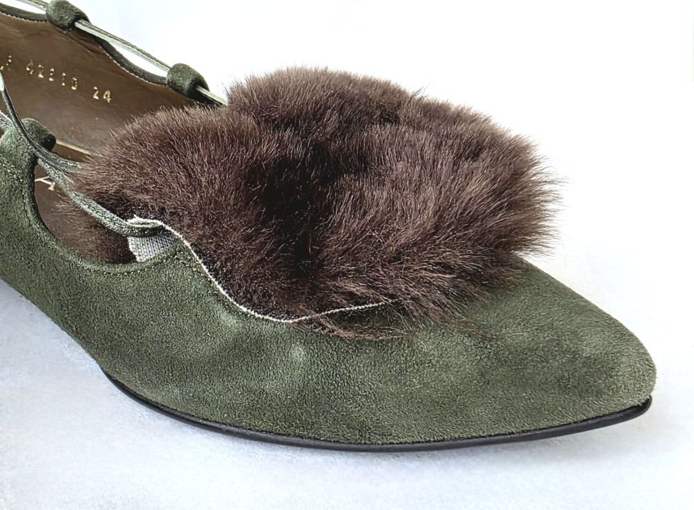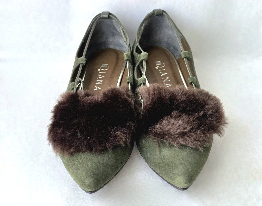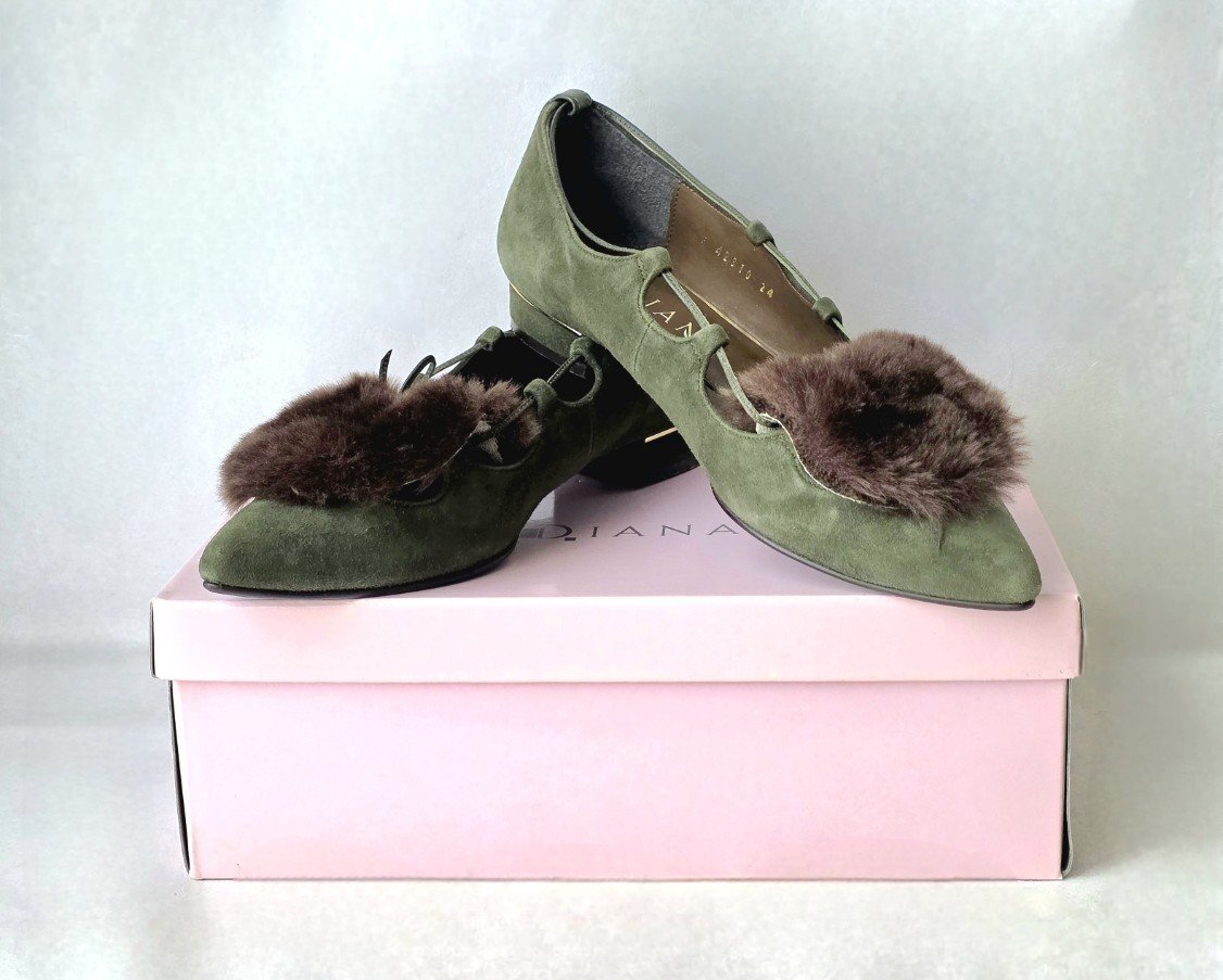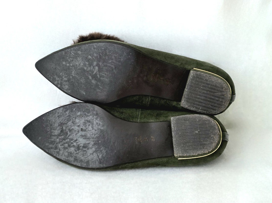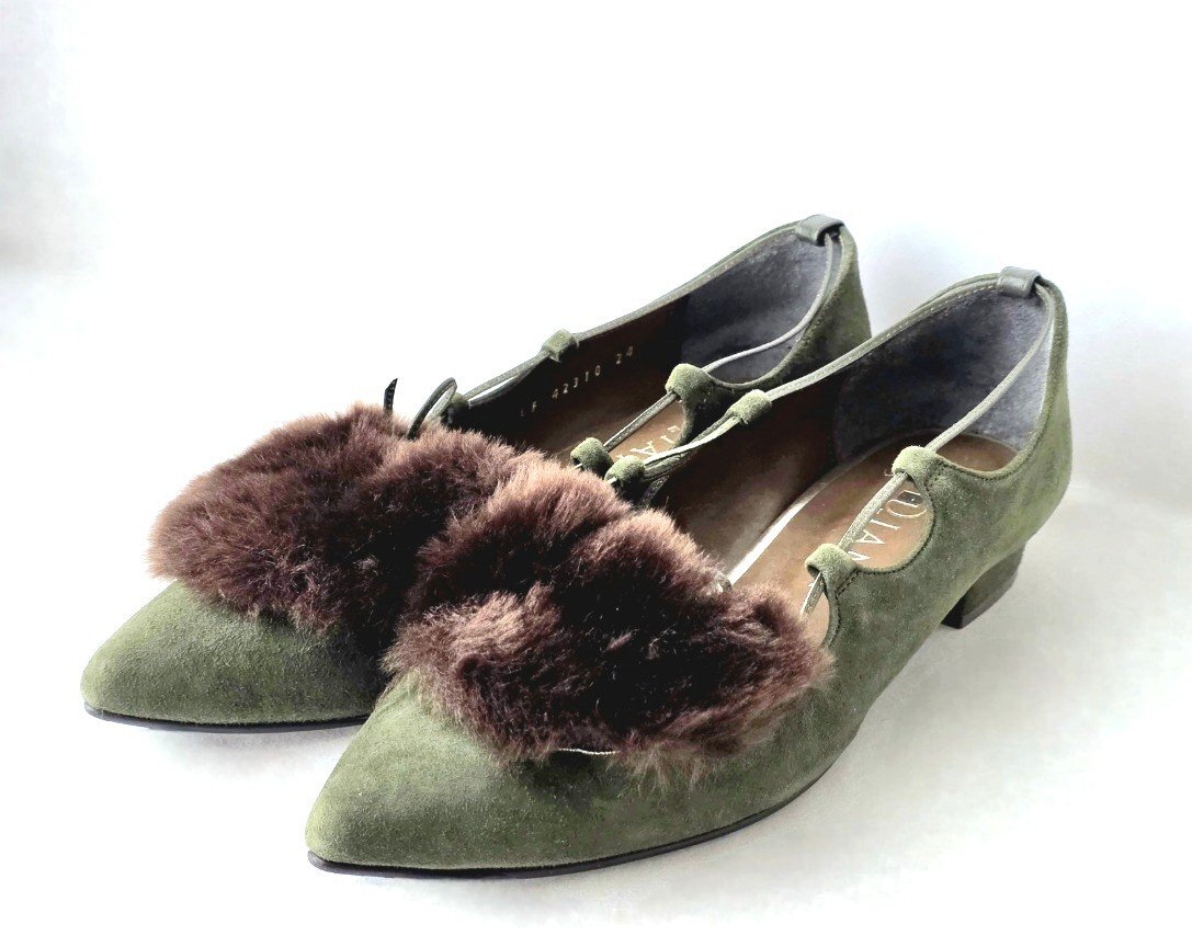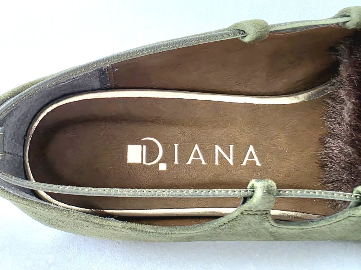| DIANA ダイアナ ファー付パンプス 24.0cm カーキ スウェード素材 モカシン ファッション アパレル レディース 普段使い HMY |