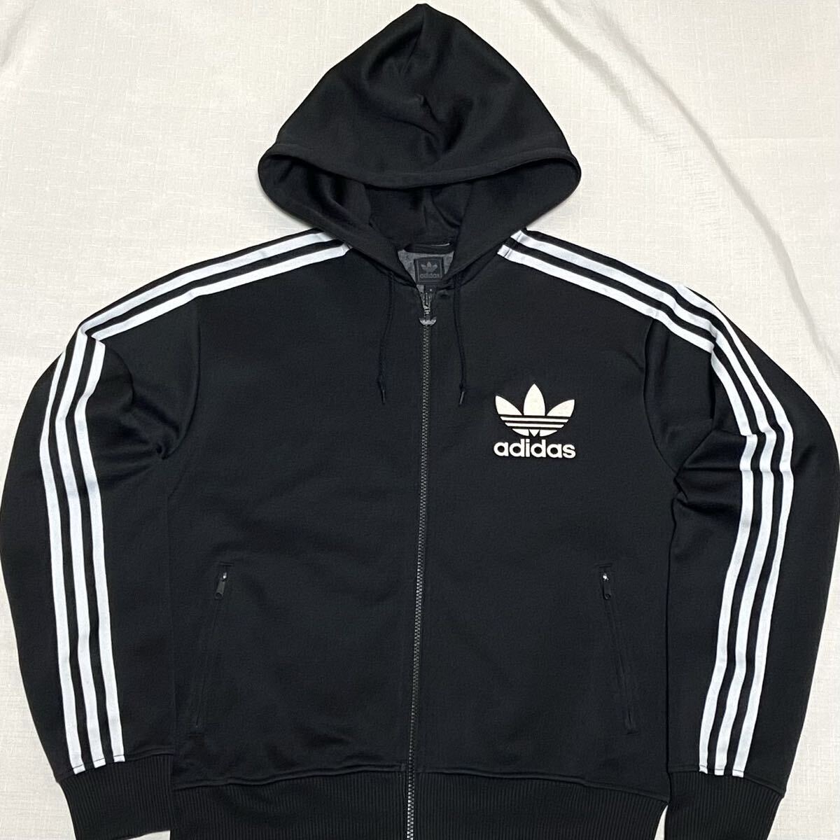 adidas アディダス オリジナルスのビンテージ復刻の黒×白のトレフォイルロゴのデカロゴのフルジップのジャージのパーカー(フード付きのトラックジャケット、トラックトップ)のサイズO(オー)です。| 出价者 | 信用 | 价格 | 时间 |