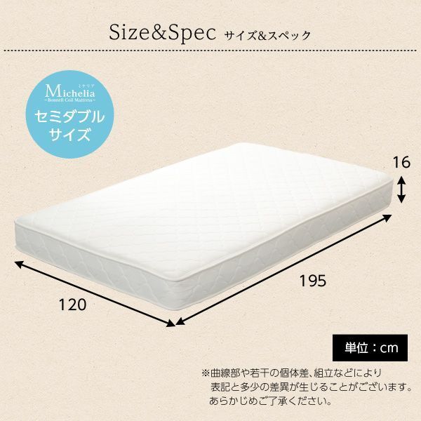 <ボンネルコイル> 【カラー】 アイボリー 【サイズ】 (約)幅120cmx長さ195cmx高さ16cm 【重量】 (約)24kg 【材質】 側地:ポリエステル100% 中材:ボンネルコイル、ウレタンフォーム、キルト、フェルト、不織布 【生産国】 中国 【梱包】 サイズ:(約)40cmx40cmx127cm(7.5才) 重量:(約)26kg 【完成品】 【ご注意】 一度開封すると元のロール状には戻らない為、開封場所にはご注意下さい。 |