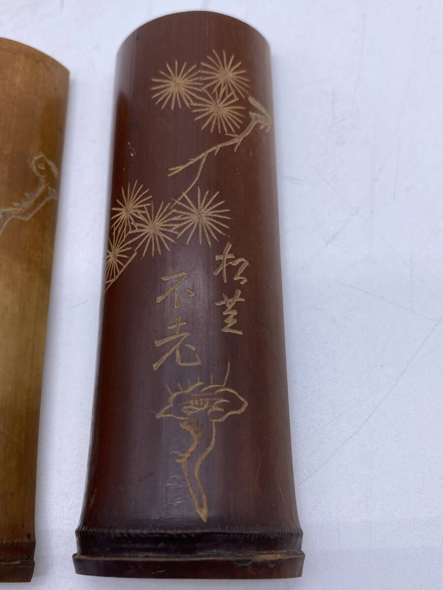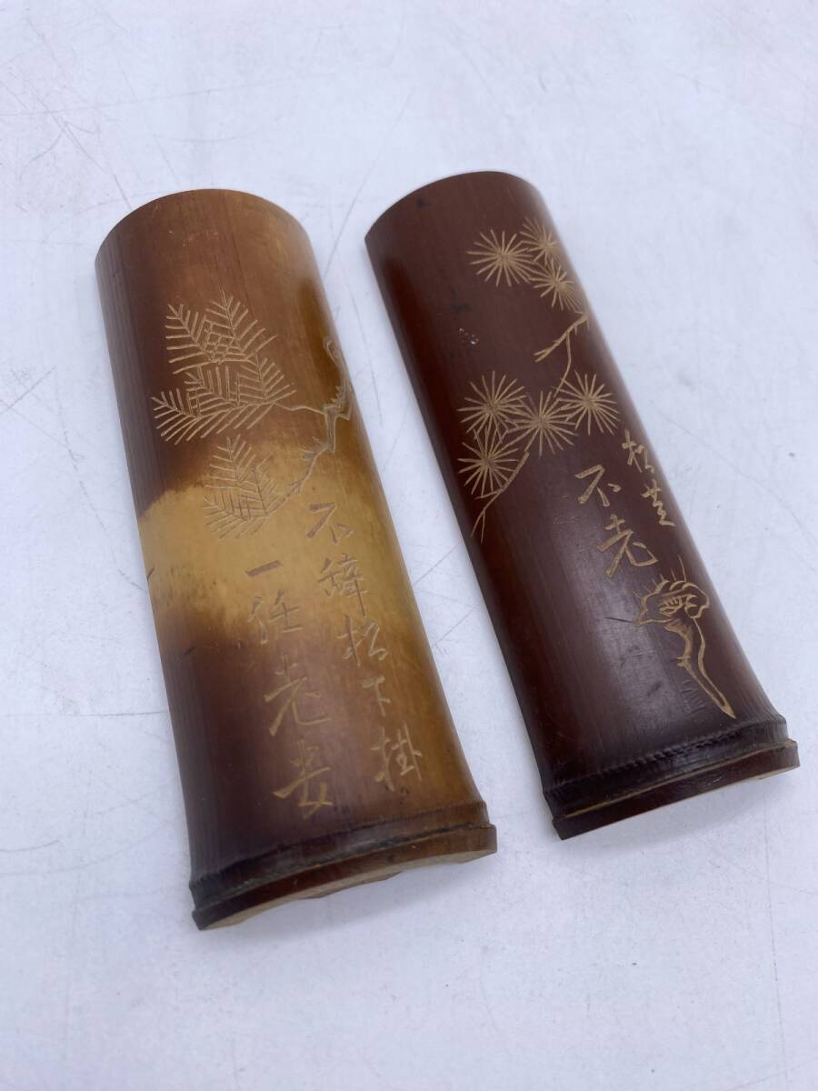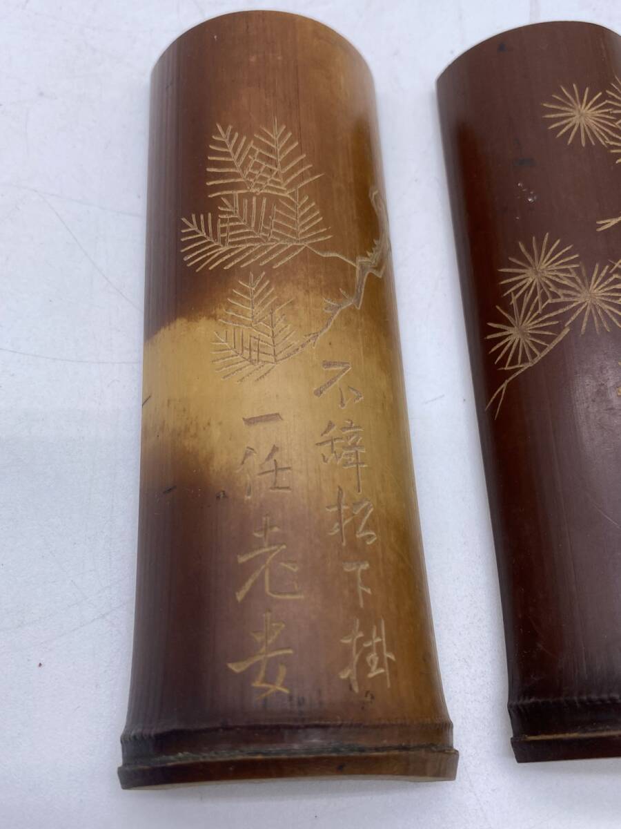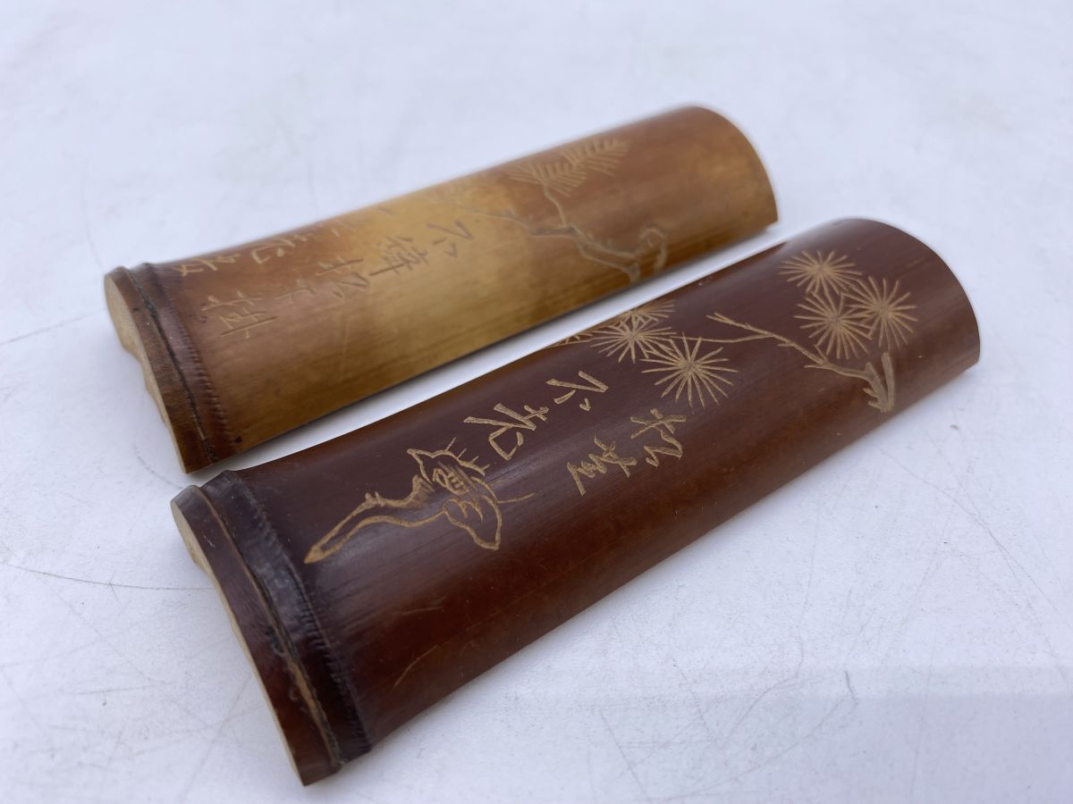 二点まとめ 竹製 彫刻 筆置(13785)