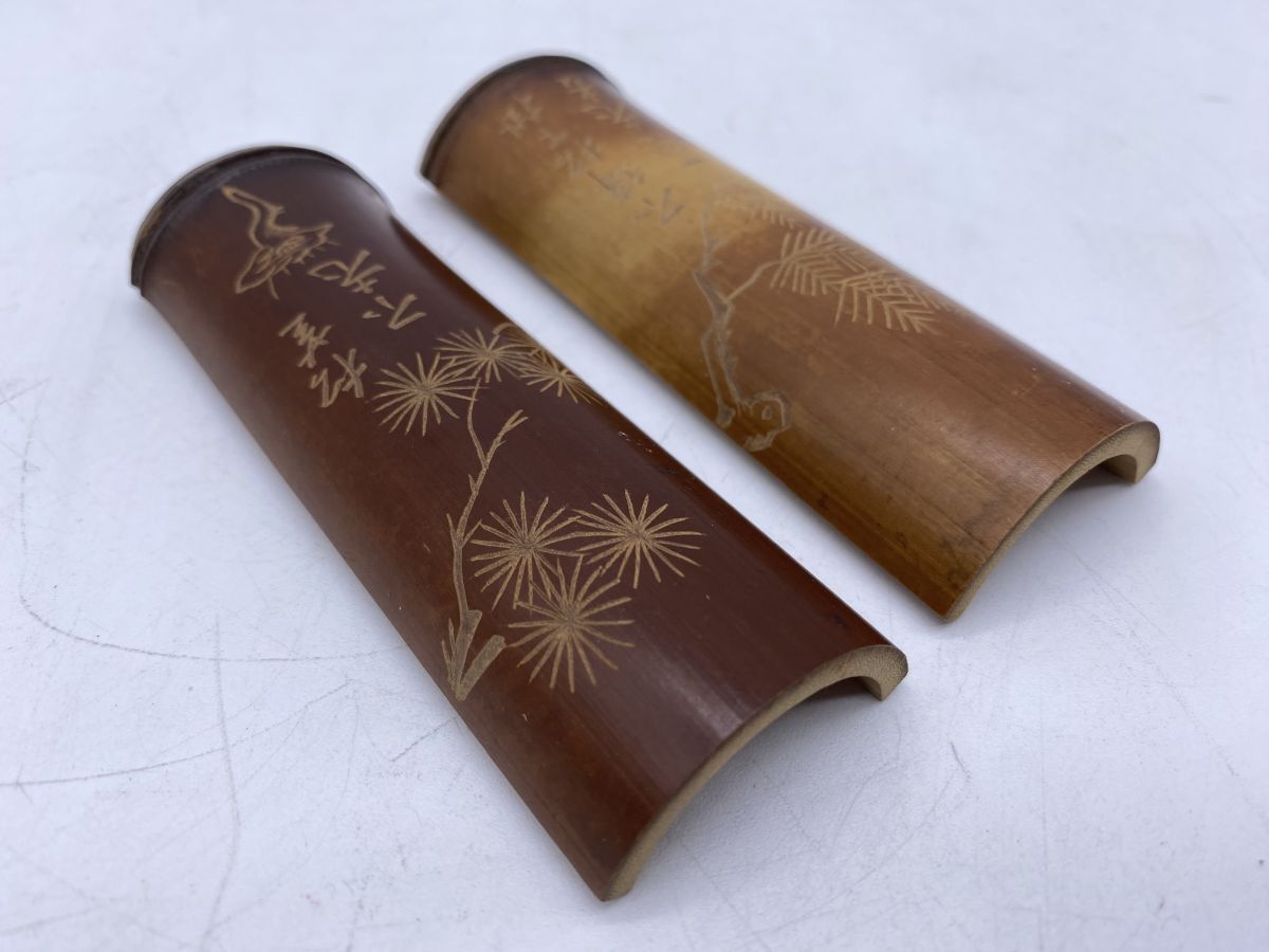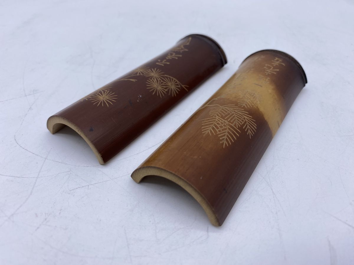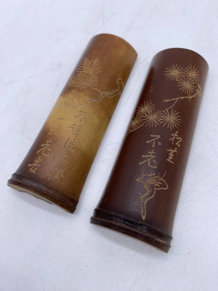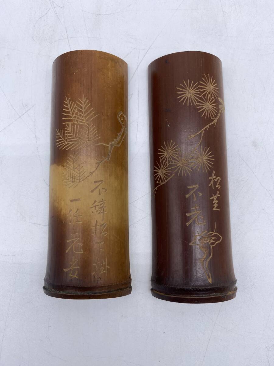 二点まとめ 竹製 彫刻 筆置(13785)