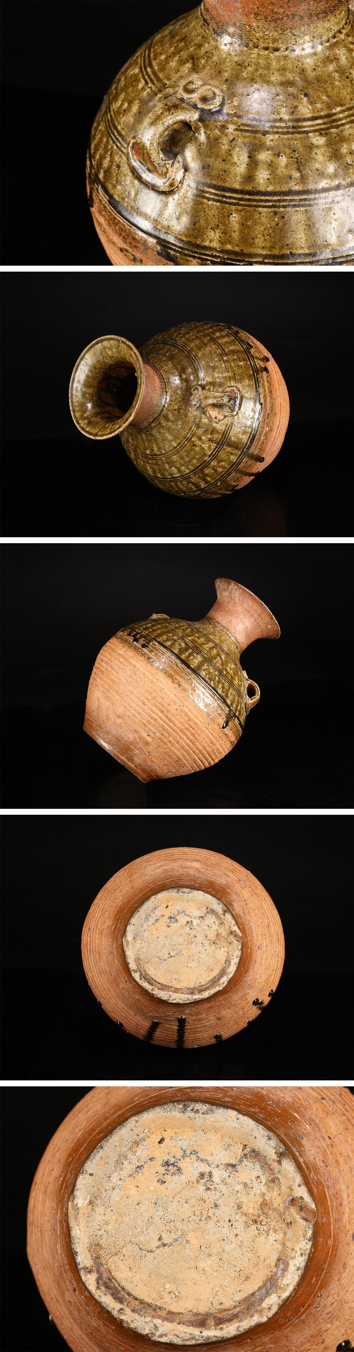 【吉】CO205 唐物 【漢代】 灰釉 双耳壷 大花瓶 高33㎝/本物保証 美品! [浏览原始页面]