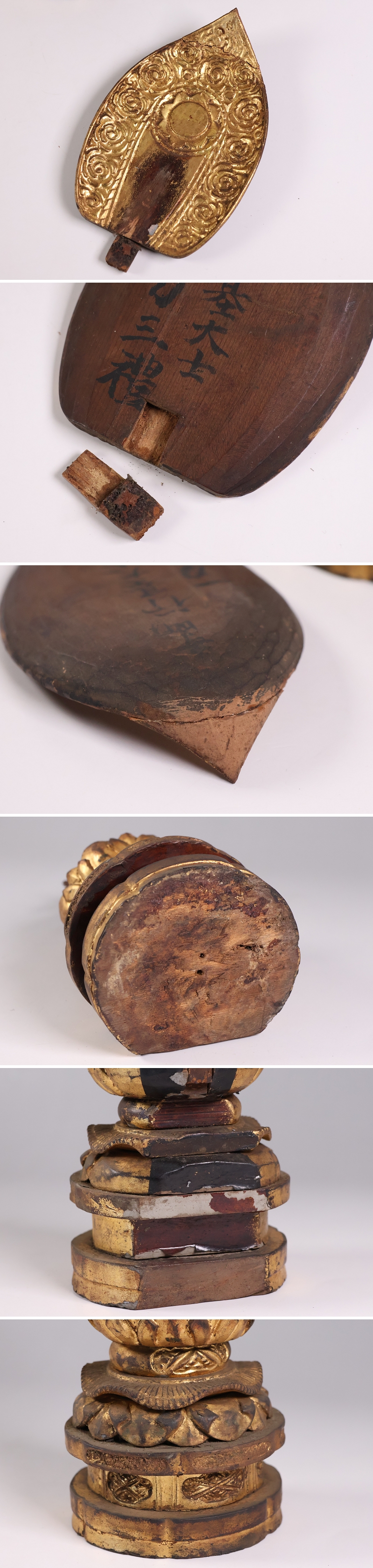 経年の、傷、ヨゴレ、剥落、カケ、補修跡、欠損、光背ぐらつきあり