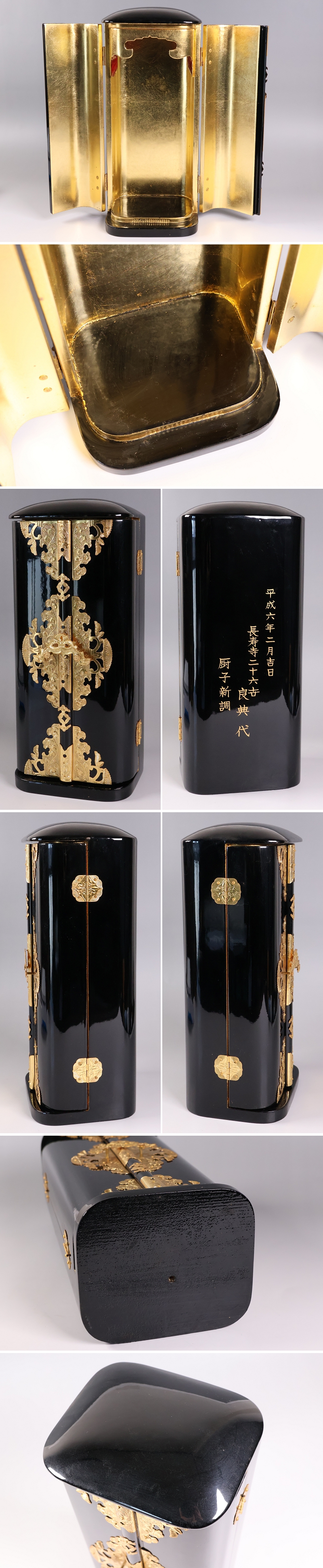 ◇時代 仏教美術 木造 如意輪観音像 厨子入り 金彩色 仏像 座像 行基大士 一刀三礼 木製【CM391】◇