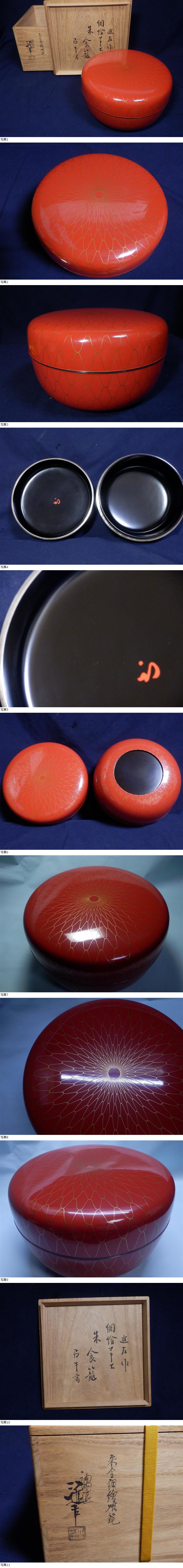 川端近左 朱金網絵喰籠 尋牛斎 (久田宗也) 書付 網絵マキエ 朱 食籠