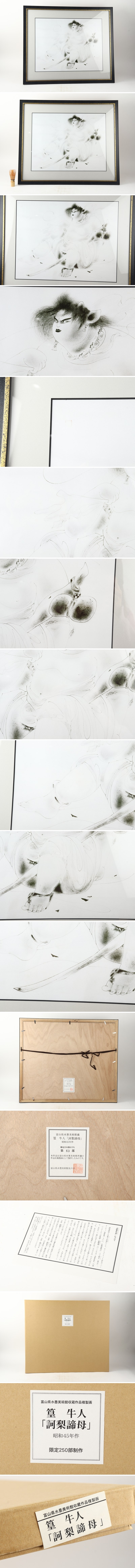 【氷】【模写】【複製】篁牛人 作 富山県水墨美術館蔵【 詞梨諦母】限定250部のうち第63部 額装 リトグラフ