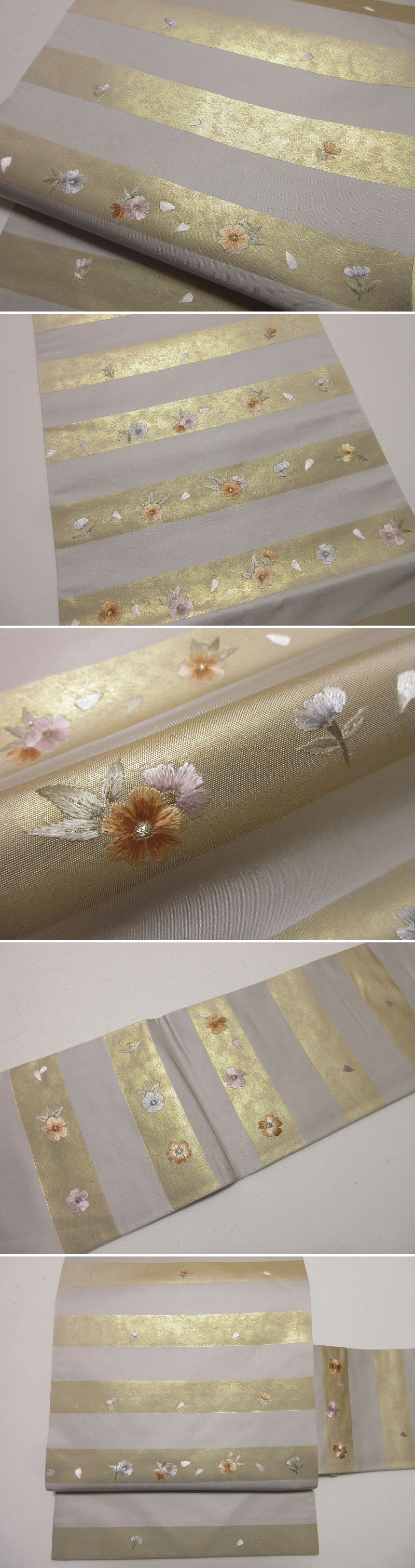| 商品名 | ドークブア■九寸名古屋帯 金彩刺繍 横段花 鼠 極上の逸品 B12 |