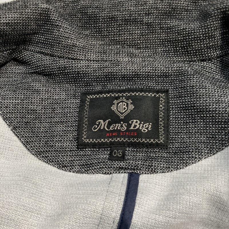 MEN'S BIGI★魅せる大人の休日&快適な着用感★襟ワイヤー スタンドカラー ニット アンコンジャケット ストレッチ 灰紺 3 メンズビギ