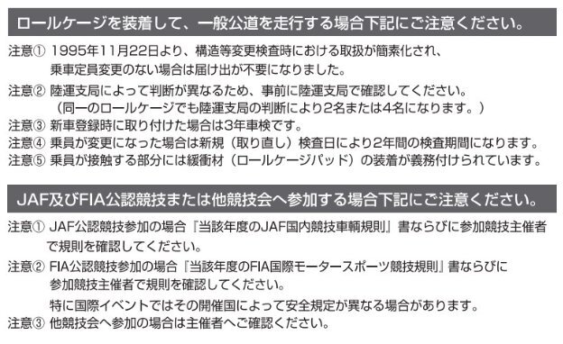 | オプション品 (別売) | ロールバーパット等のオプションは、こちらのメーカーHPで品番 の確認をお願いします。 ご希望の方はカート内【ストアへのご要望】より、品番のご指定を お願いします。 |