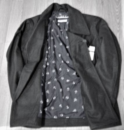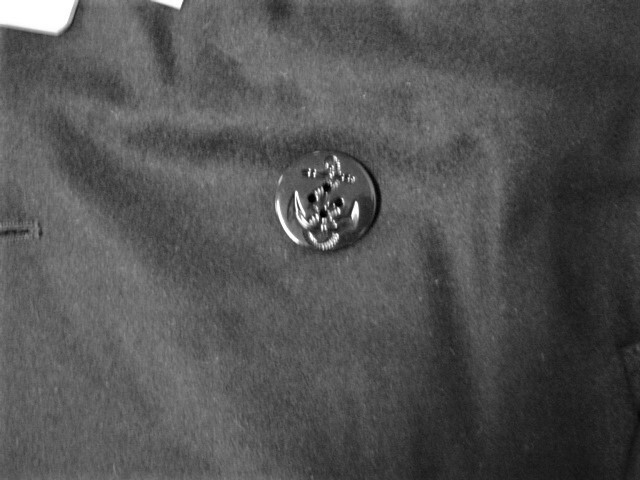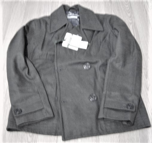 メルトンウールピーコート【新品】 UNION TRADING㈱ 表地メルトン毛50%ポリエステル30%ビスコース15%アクリル5% しっかりした作りです 裏地(紺)ポリエステル100%錨プリント タイトフィット、スタイリッシュなデザイン、日本サイズ クールなデザインで人気商品です 錨マークボタン8個ボタン、中に1個ポケット 税込み価格9504円(価格8800円) 写真は一つの写真を各サイズで共用しております