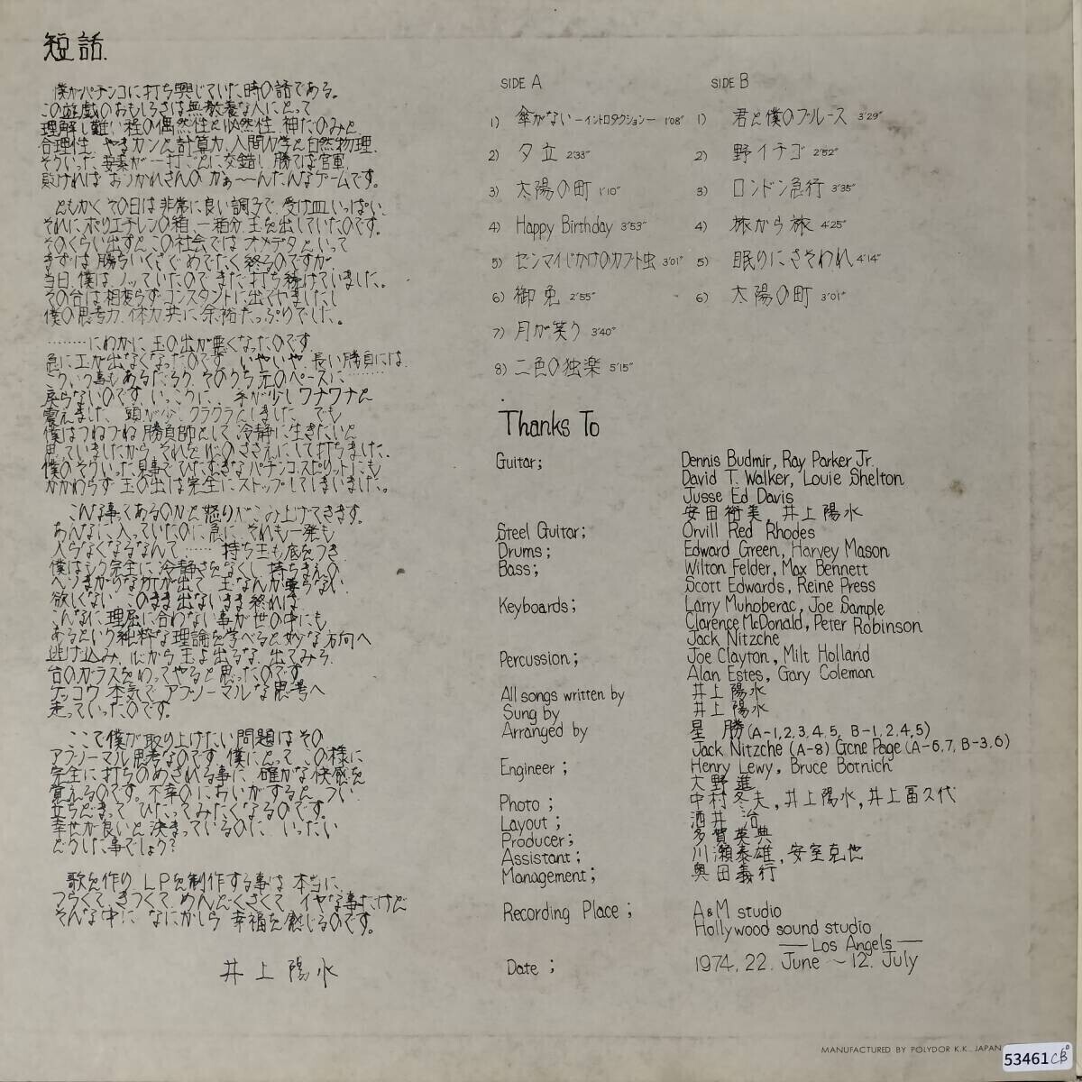 | 商品説明 | 最後までご覧いただきありがとうございます。 【レコードコンディション】 ・ジャケット:痛みが見られます。 (例:複数のキズ・破れ等) ・盤:概ね良好な状態を保っています。 (例:浅い傷・スレ等) 【佐川急便3枚まとめ発送がお得!】 ★レコード1~2枚→全国一律(沖縄・離島は定形外郵便)550円 ★レコード3枚→全国一律(*沖縄・離島除く)500円 ★10000円以上落札の場合→送料0円 *沖縄・離島の方の発送は郵便局での最安値の方法でご提案します。 ★出品ID SG Label-A→洋楽中心に展開しております。 SG Label-C →洋楽中心に展開しております。 SG Label-B →邦楽中心に展開しております。 SG Label-D →邦楽中心に展開しております。 SG Label-E→いろんなジャンル展開しております。 SG Label-F→いろんなジャンル展開しております。 ★ストア SG label→いろんなジャンル展開しております。 ★ヤフーショッピング SG LABEL→いろんなジャンル展開しております。 ※SG Label間で落札いただいた場合は、 可能な限りまとめて発送いたします。発送先入力後、入金前に コメントにてお知らせください。送料調整いたします。 |