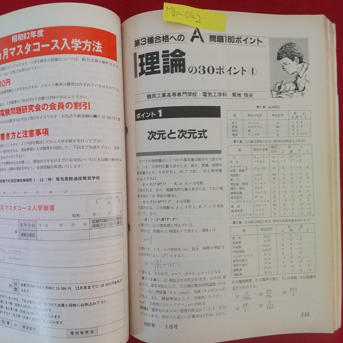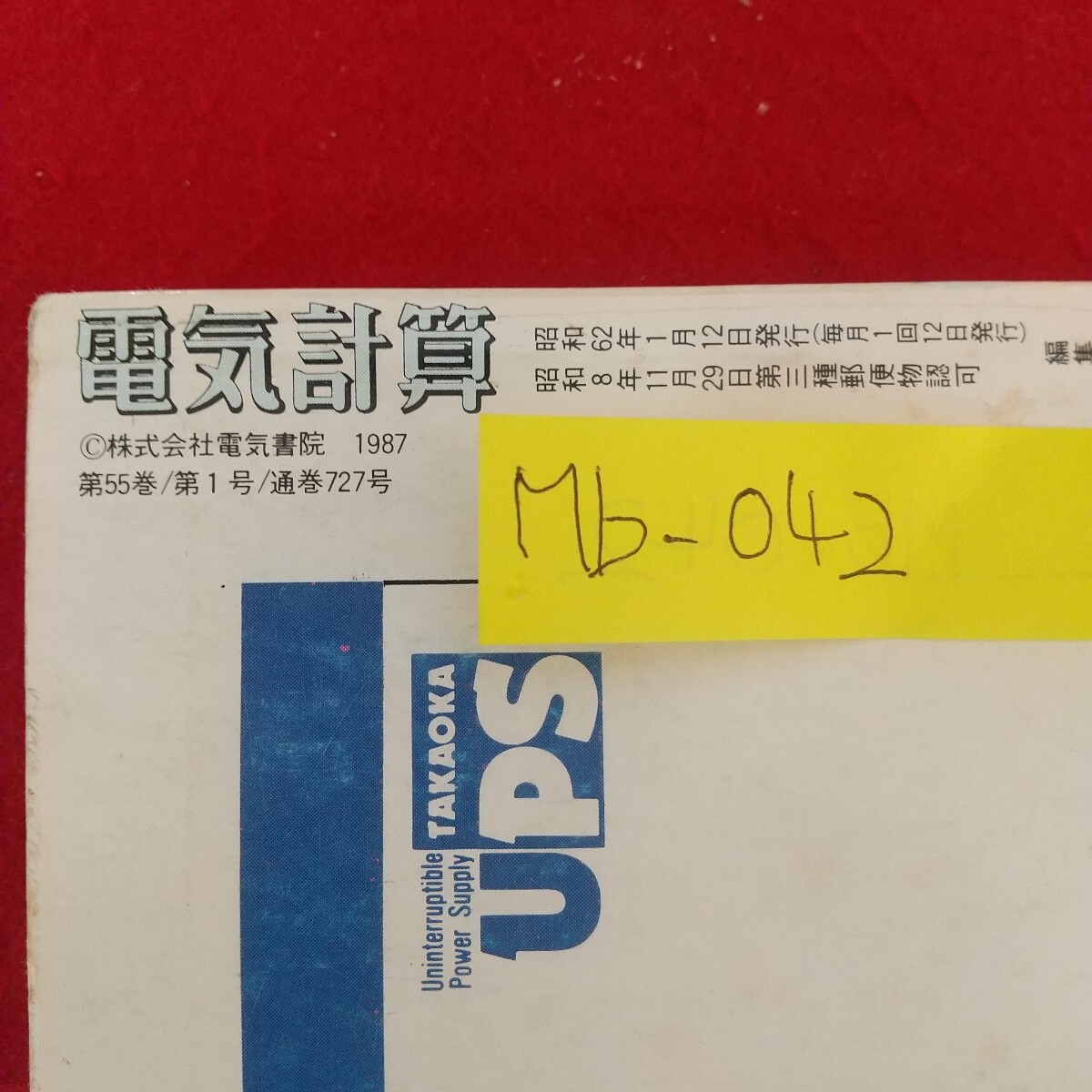 Mb-042/電気書院 発行 電気計算 1987年1月号 通巻727号 特集 AI(人工知能)へのアプローチ 第3種合格へのシーケンススタディ/L2/70228