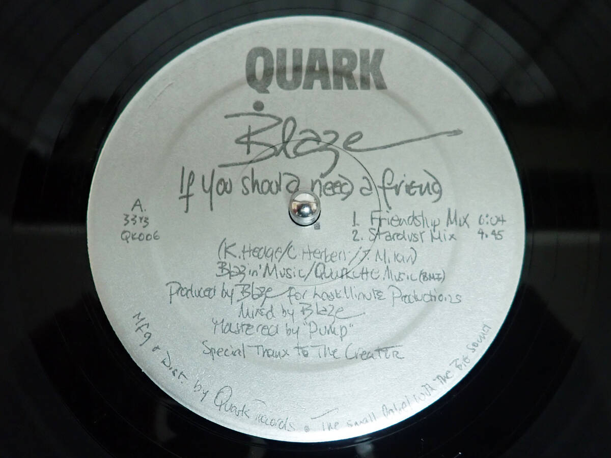 本タイトルでハウスを音楽的に昇華させたユニットとして Blaze が広く認知され始めた重要曲、メイン・ミックス以外のダブも しっかりと作り込んである入魂の1作で、フロア向け かつリエディットにも嬉しい内容です。 また、やはり Blaze は Chris Herbert がいた頃が一番良いと思えてしまう1枚でもあるように思います。 If You Should Need A Friend (Friendship Mix) If You Should Need A Friend (Stardust Mix) If You Should Need A Friend (Paradise Mix) [収録曲] A1. If You Should Need A Friend (Friendship Mix) - 6:04 A2. If You Should Need A Friend (Stardust Mix) - 4:45 B1. If You Should Need A Friend (Movin Mix) - 8:40 B2. If You Should Need A Friend (Paradise Mix) - 5:44 コンディション メディア NM ジャケット NM- ジャケ内側にテープ痕がありますが、それ以外メディアを含めて新品に近い状態でお楽しみ頂けると思います。 輸入盤をほとんど扱った事の無い方、ご理解の無い方は入札をご遠慮下さい。 基本的にノークレーム・ノーリターンでお願い致します。 また、落札後48時間以内に何らかの連絡の取れない方は、落札者都合で削除する場合がございますので、ご注意下さい。