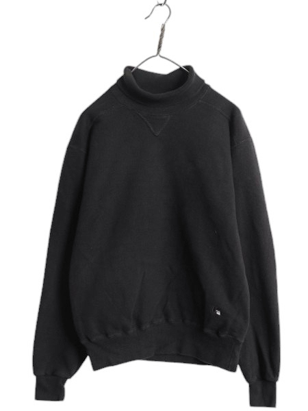 | 商品名 | 90s USA製 ラッセル 無地 タートルネック スウェット メンズ レディース S / 90年代 オールド トレーナー RUSSELL スエット 裏起毛 前V 黒 |