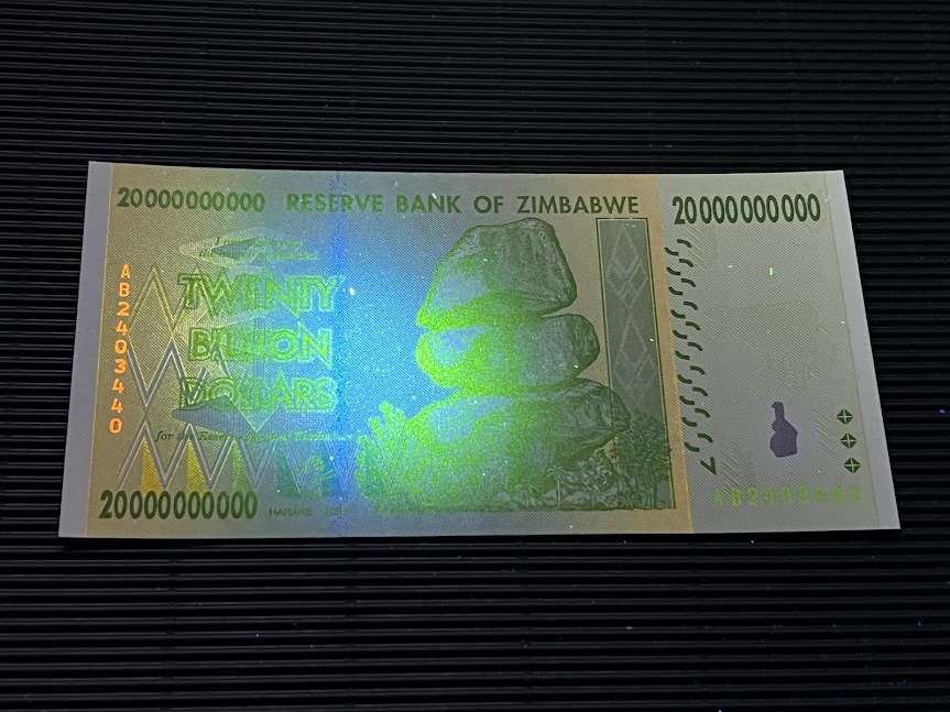 本物保証 UVライト確認済み ★ジンバブエ ハイパーインフレ紙幣★ 200億(20Billion)ドル紙幣(3次の22) 2008年 甘い未使用~未使用 p-86b #AB2403436 送料無料