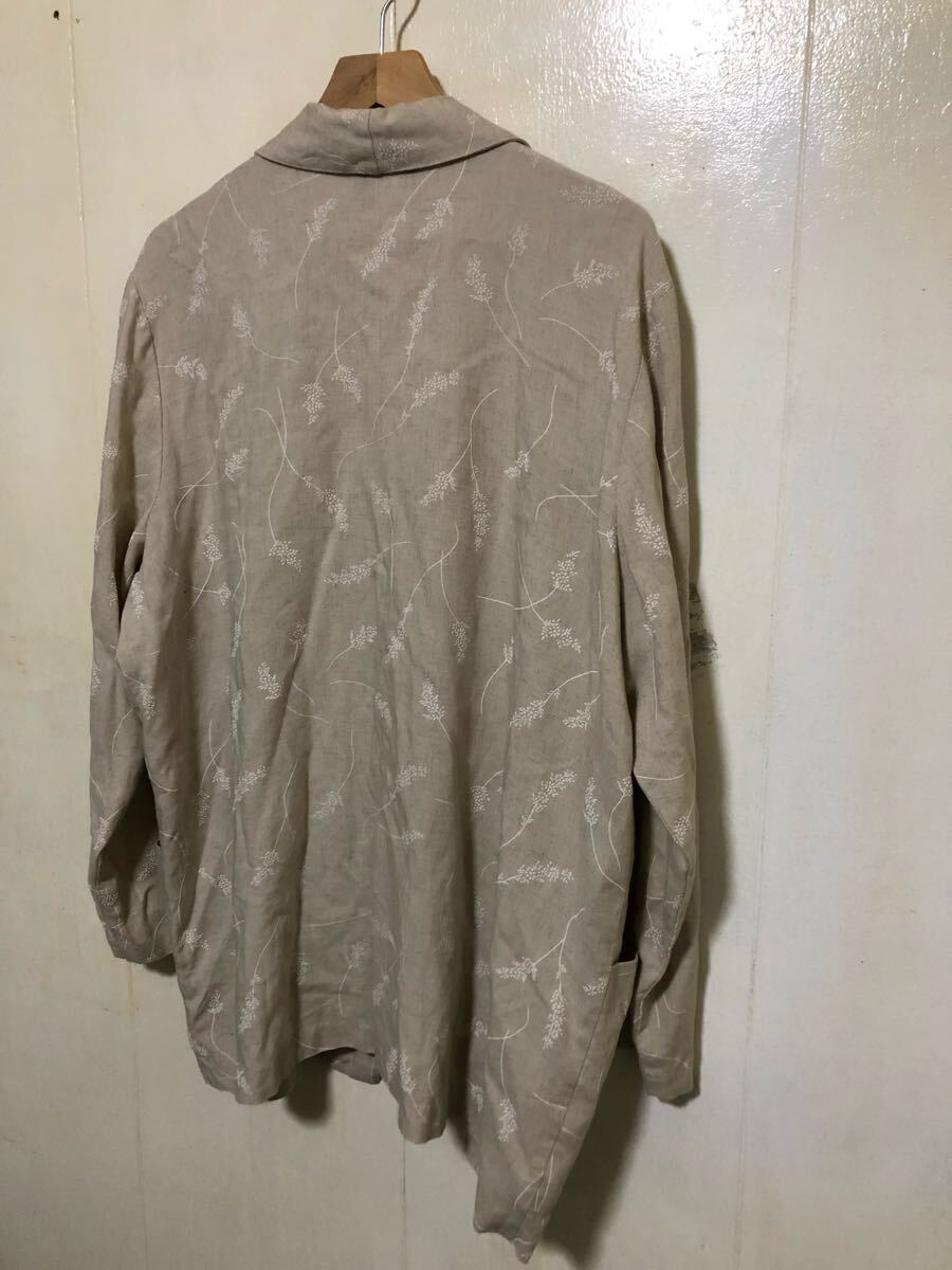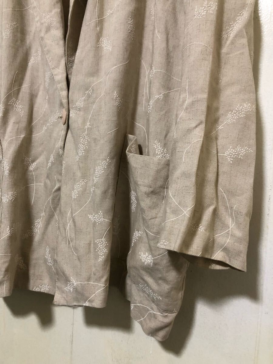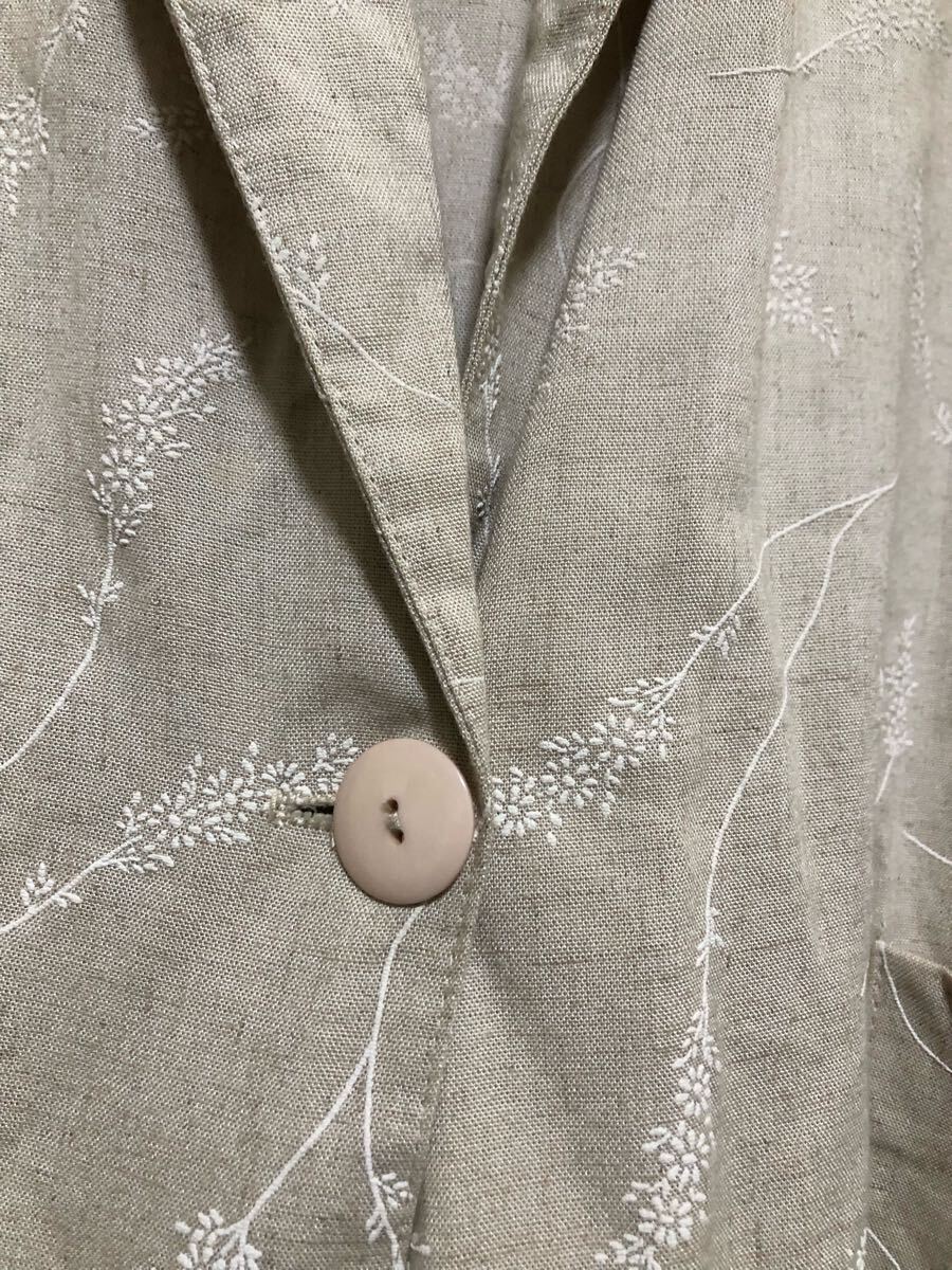 アートな花柄刺繍デザイン夏でも活躍可能なレーヨン混の薄い素材なのでサラッと羽織れ、緩いスタイルのジャケットです。