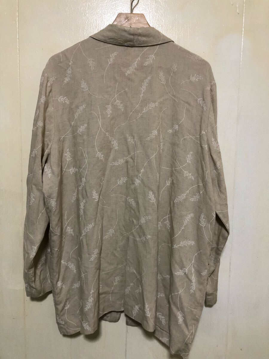 オリエンタル柄・エスニック柄・和柄等の落ち着いた雰囲気を合わせ持ったような総柄刺繍がインパクトあるライトアウターです