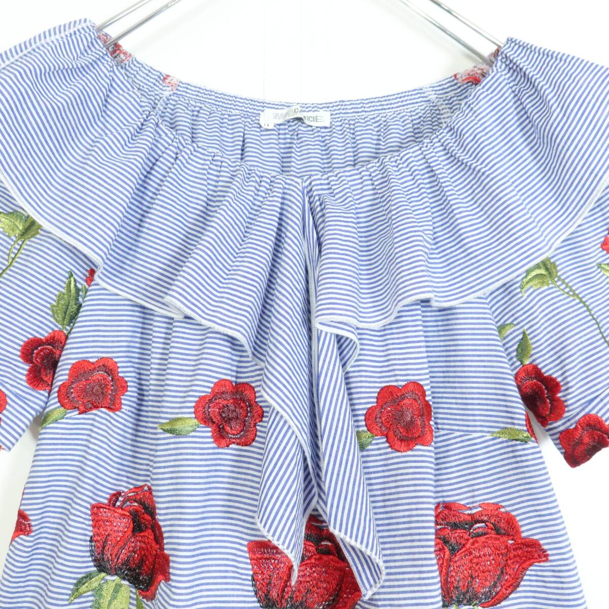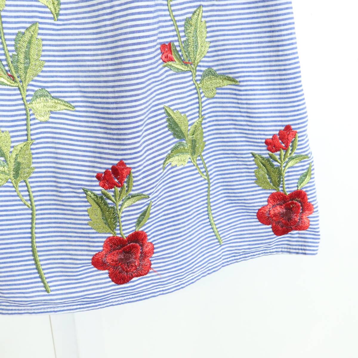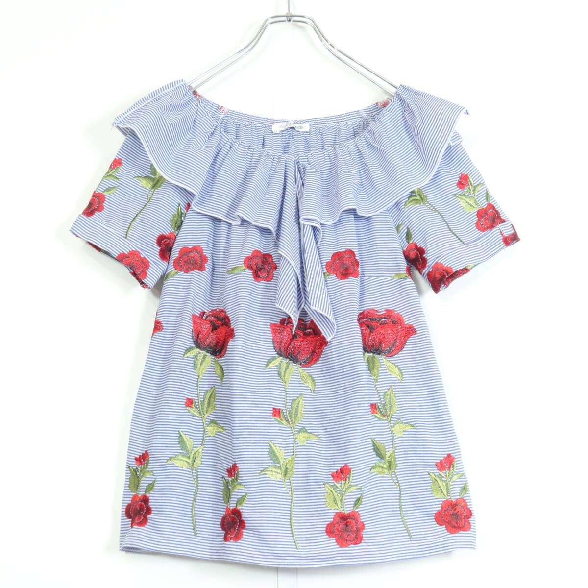 | 商品説明 | 【実寸約】ゆき丈44バスト90着丈56(cm) 【サイズ表記】 2 【素材】コットン100 【状態】普通の使用感のあるお品物 【デザイン】青×白色系 薄手/ストライプ柄/バラ刺あり 大きなバラとフリルがおしゃれかわいいカットソーです。 |