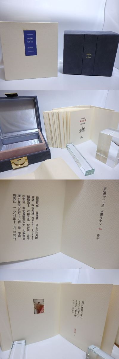 飾画歌集 陽帝領 限定222部 直筆歌署名入 未綴50葉・貼写真50点 / 塚本邦雄 ◯当店在庫から「塚本邦雄」の本を探す| ★ 発送方法 (送料無料) ・日本郵便のゆうパケット・レターパックライト・レターパックプラス・ゆうパックの中から荷姿の大きさに適した方法で発送します。(発送方法や到着日時はご指定いただけません。) ・上記発送方法はすべて追跡番号付き・土日配送有・速達扱いです。ゆうメールや定形外は発送に使用いたしません。 ・ゆうパケット・レターパックライトは郵便受けにお届け、レターパックプラス・ゆうパックは配達員対面受取です。防水梱包します。 ★ 必ずお読みください ・代金決済後の次の火木土に発送します。 ・ストア出品です。ご注文時に必要事項のご記入・決済いただいた後は、やり取り不要です。商品の到着をお待ち下さい。 ・肉筆物・美術作品は真作保証いたします。 ・商品のレファレンス(調べ物)サービスは行っておりません。また当店商品以外の無料鑑定は行っておりません。 |