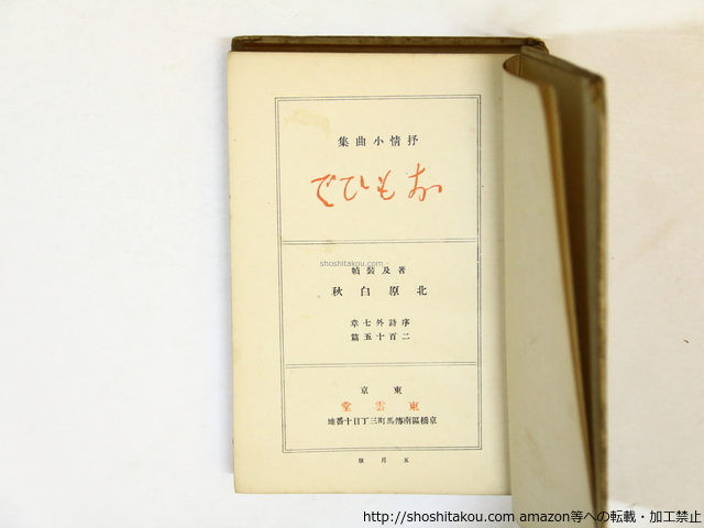 思ひ出(おもひで) 初版 / 北原白秋 ◯当店在庫から「北原白秋」の本を探す| ★ 発送方法 (送料無料) ・日本郵便のゆうパケット・レターパックライト・レターパックプラス・ゆうパックの中から荷姿の大きさに適した方法で発送します。(発送方法や到着日時はご指定いただけません。) ・上記発送方法はすべて追跡番号付き・土日配送有・速達扱いです。ゆうメールや定形外は発送に使用いたしません。 ・ゆうパケット・レターパックライトは郵便受けにお届け、レターパックプラス・ゆうパックは配達員対面受取です。防水梱包します。 ★ 必ずお読みください ・代金決済後の次の火木土に発送します。 ・ストア出品です。ご注文時に必要事項のご記入・決済いただいた後は、やり取り不要です。商品の到着をお待ち下さい。 ・肉筆物・美術作品は真作保証いたします。 ・商品のレファレンス(調べ物)サービスは行っておりません。また当店商品以外の無料鑑定は行っておりません。 |