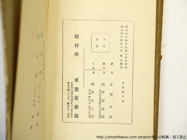 郵送(着払)・店頭にて買受いたします。 郵送買取は、段ボール一箱につき当店の販売価格20000円位から承ります。 一点ずつの査定額はお知らせしておりません。総額のみとなります。 リストを作っていただければ大まかに事前見積します。 ○当店の専門で、かつ販売価格で2000円以上のものは概ね2割から6割程度で買取いたします。 ○1冊で数万円から数十万円以上になるような稀覯本につきましては、この限りではなく、個別にご相談承ります。 【取扱分野】 明治大正・戦前昭和・戦後から現代までの小説・詩集・歌集・句集・雑誌同人誌・資料・肉筆・限定本・幻想・海外文学など 査定は初版・限定・特装・異装・私家版・発禁・署名・帯等有無など考慮してお伝えします。 ■郵送の場合 (1)電話・FAX・メールなどで買取品目・量などをお知らせください (2)身分証のコピーを同封し、宅配便等の着払でご送付ください 運転免許証・健康保険証・日本国パスポート・在留カード・住民基本台帳カード(写真入のもの) (3)到着後、査定額をご連絡いたします 査定額にご同意いただけない場合は着払にて返送します。一部のみ返送はできません (4)査定にご同意いただけましたら、本人限定受取・転送不要の現金書留でご送金します 振込可、ただし公安委員会の定める本人確認作業を兼ねているため、明細書のみ本人限定受取・転送不要の書留でご送付します ※事前にご相談のない着払は受け取りません。 ※身分証コピーは買取業務以外に使用せず、公安の規定する三年の期間経過後に裁断廃棄します。 ■送付先 〒116-0013 荒川区西日暮里4-21-7 コート池上104 書肆田高 (しょしたこう) TEL・FAX :03-5842-1552 メール:info@shoshitakou.com |