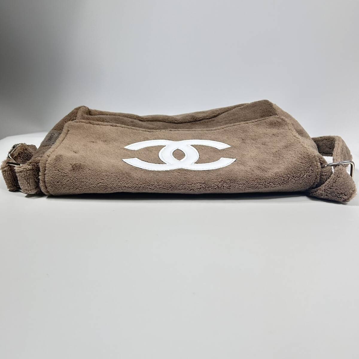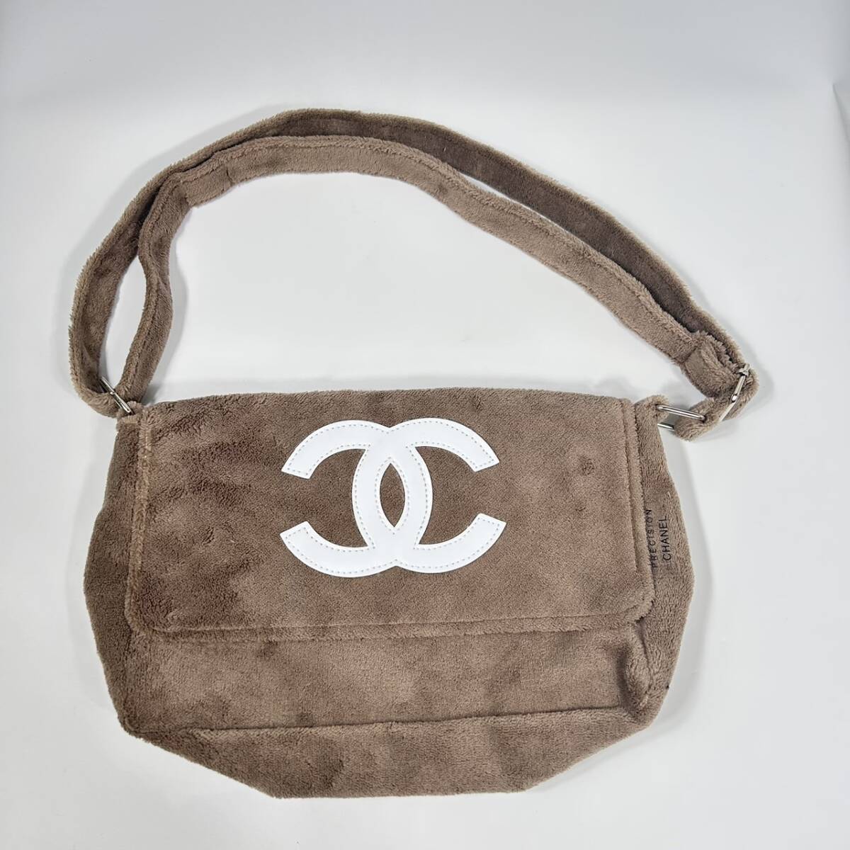 | S② CHANEL シャネル ノベルティ メッセンジャー ショルダーバッグ パイル地 茶色 ベージュ ロゴ ココマーク ポケット付き | ||