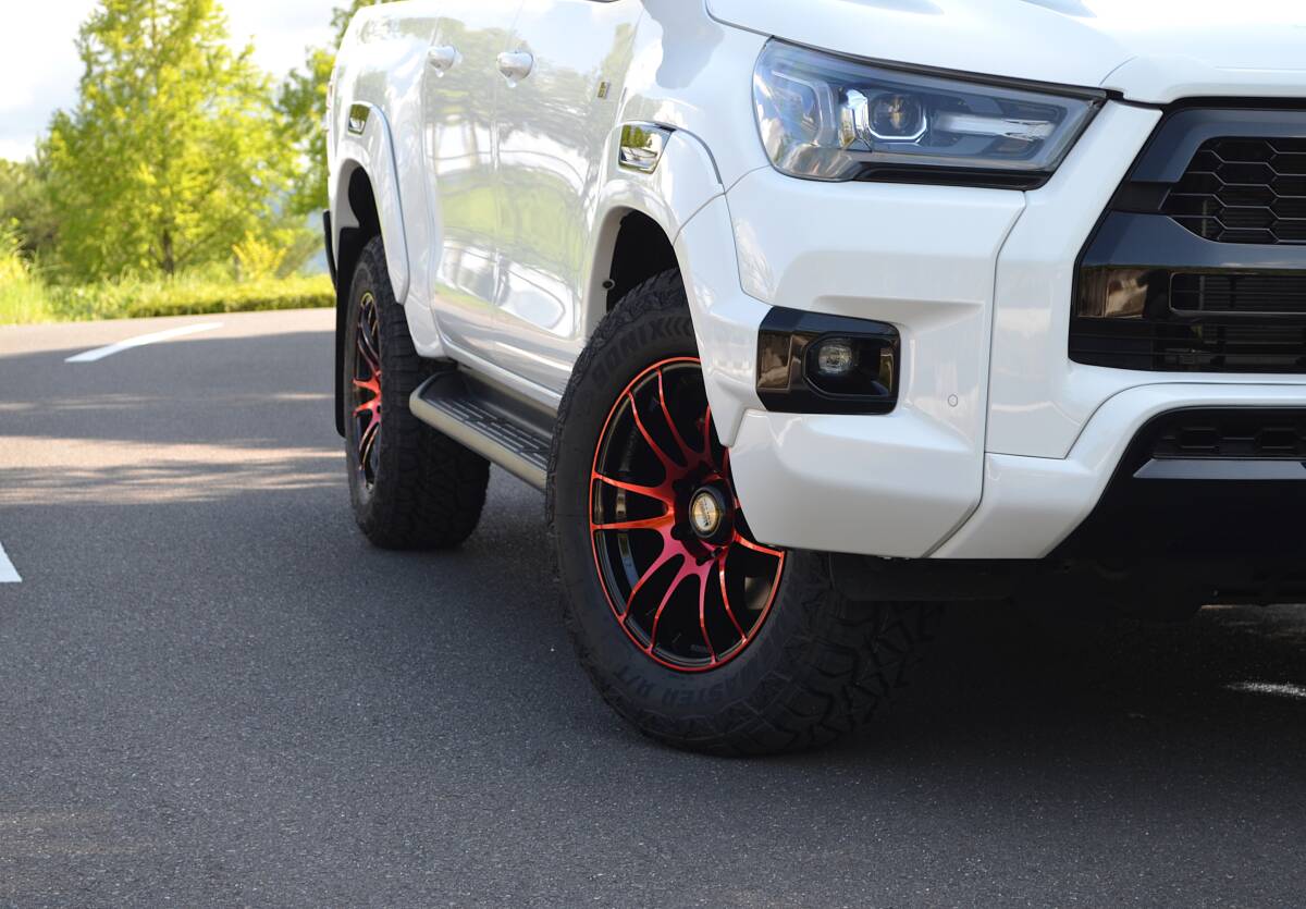 | 備考 | ※車両画像はイメージです。 ※画像写真よりも、タイヤが「バイキング WinTech WT6 SUV 285/60R18 (コンチネンタル社)」となります。 ※年式や型式等により、サイズが合わない場合も御座います。 こちらの商品は、上記タイヤ・ホイール 4本セットとなり、組込み・バランス調整済となります。 ホイールラグナットとソケットは付属します。JWL・T・VIA 適合品です。 ※センターキャップが、一台分セット付属します。 三種類中に希望のキャップを取引ナビに書いてください/メッセージがなければ「ブラック」のキャップ付属します 装着参考車種・・・ハイラックス GUN125 用に 下に詳細写真リンク貼ってます。大きめの写真「Gallery」にありますので、見て下さいませ。 Gallery 下にリンク貼ってます。その他商品「ハイラックス GUN125 用に」にありますので、見て下さいませ。 その他商品「ハイラックス GUN125 用に」 | ||||||||||||||||