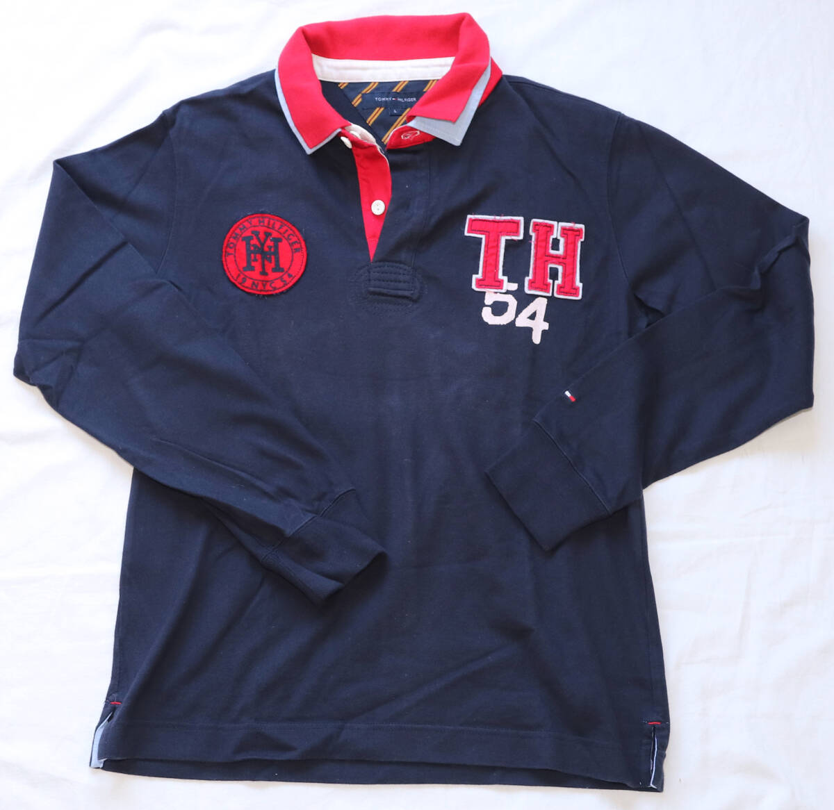 トミーヒルフィガーのラガーシャツです。 左胸の大きいTHロゴ、右胸のエンブレムがおしゃれです。 |