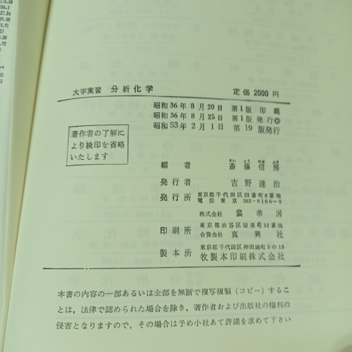 Jd-099/大学実習 分析化学 東大教授 斎藤信房 編 昭和53年2月 発行/L6/70815