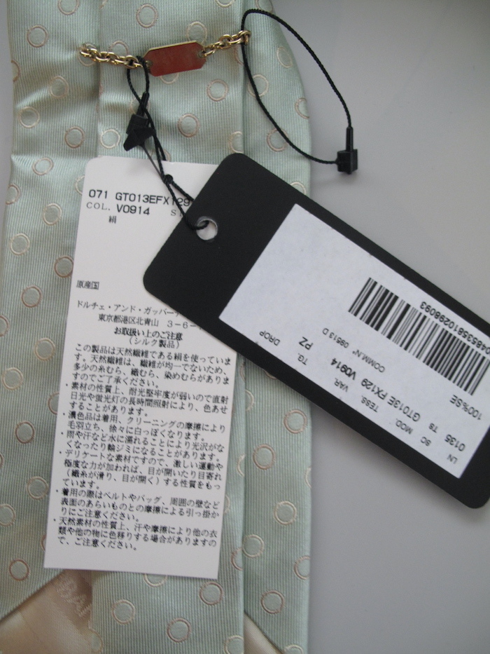 商品名*** ドルチェ&ガッバーナ メンズ シルクネクタイ 状態***未使用品(家庭内保管) 説明*** ドルチェ&ガッバーナ 未使用品のシルクのネクタイです 色は淡いミントグリーンです 国内正規代理店のものです 畳んで保管、梱包しますので 畳シワはご容赦ください サイズ** 実寸 平置き 約 剣先の幅 9.5cm 全長 144cm 素材** シルク 100% |