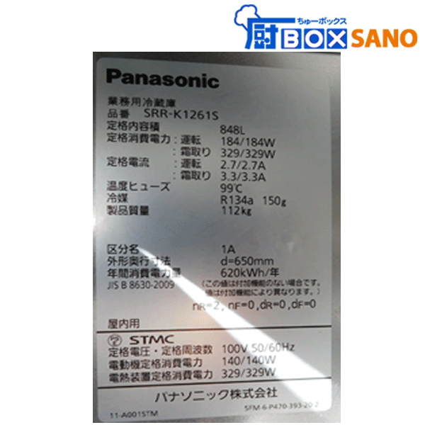 | 名 称 | パナソニック 縦型冷蔵庫 SRR-K1261S 2014年製 100V 業務用 中古 sano6437 |