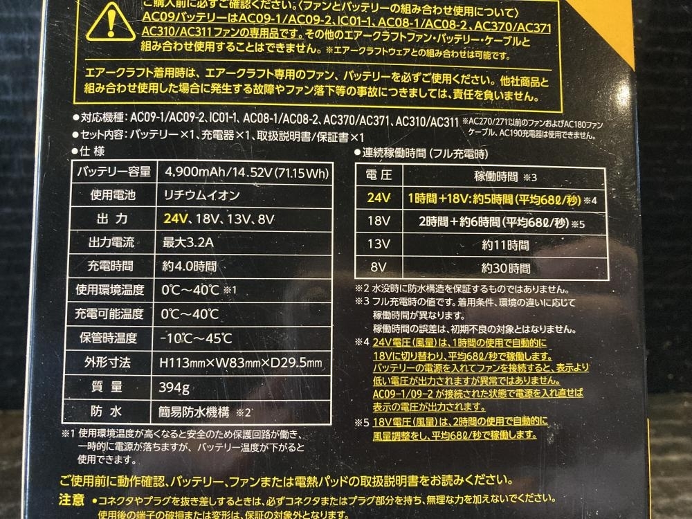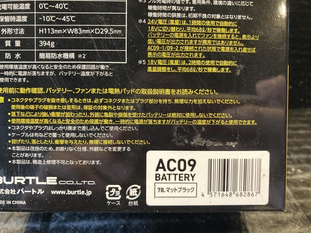 バートル ■商品名 エアークラフトリチウムイオンバッテリー ■型番 AC09-24V |
