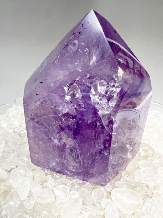 『Amethyst』はアメシストやアメジストと呼ばれておりますが、 正式名称は「アメシスト」です。 日本ジュエリー協会と宝石鑑別団体協議企(AGL)が共同で発表した 「色石等に関する定義および命名法」では、 正式名称は「アメシスト」とされています。 石言葉は 「真実の愛」「心の平和」「誠実」。 アメシストは愛の守護石と言われていて、 恋愛運において非常に高い効果のある石としても知られています。 また、感情を鎮めて心に平和を与え、 精神の安定をはかる効果があると言われています。 不安やストレスを取り除き、穏やかな気持ちにさせてくれます。 非常にスピリチュアルなパワーが高いとされていて、 恋愛だけでなく厄除けやクリエイティブな仕事をしている人の お守りとしても人気です。 | |