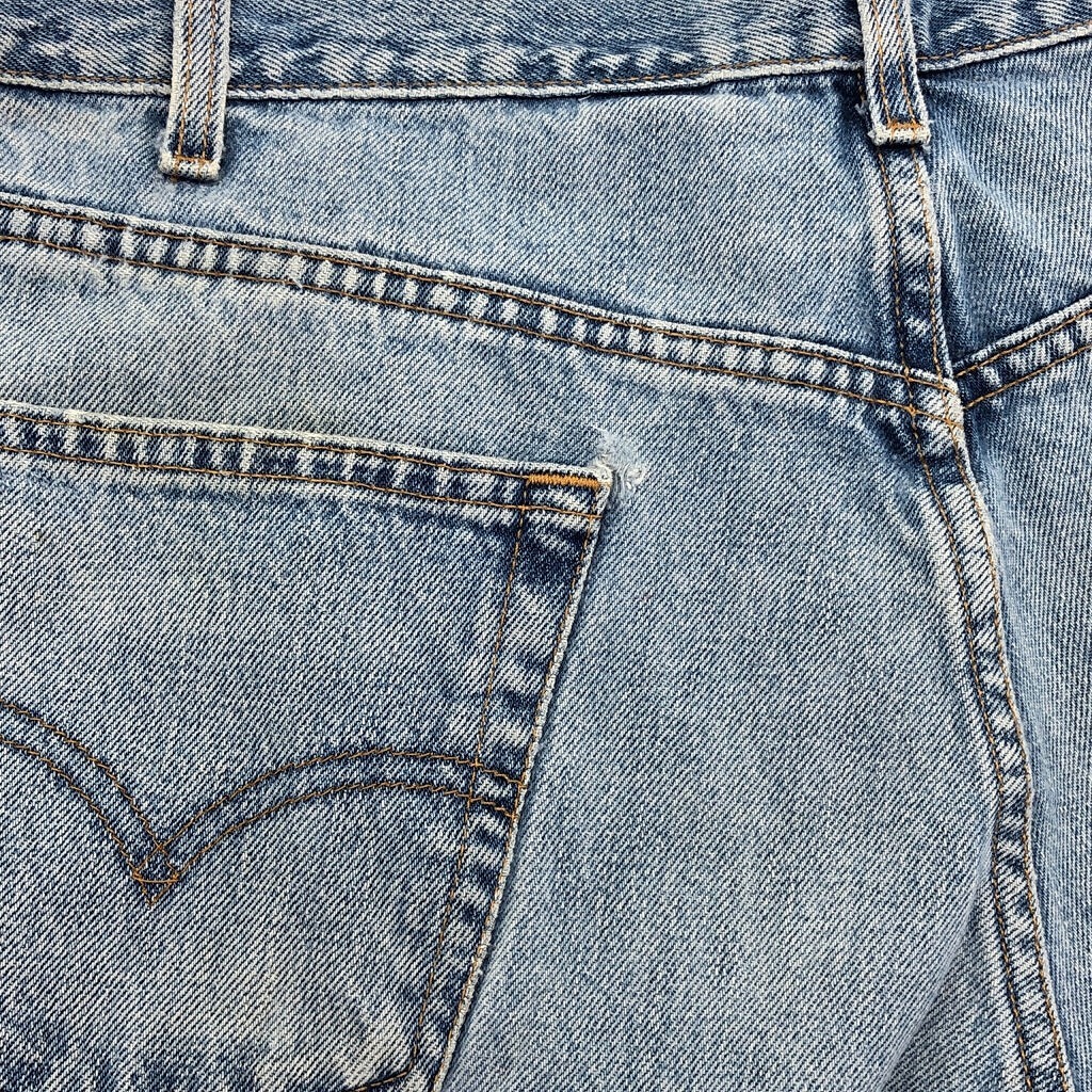 | 【商品管理番号】 V0168 【ブランド】 Levi's/リーバイス 【サイズ】 W36 L30 【実寸サイズ】 ウエスト:約86cm 股上:約31cm 股下:約76cm わたり幅:約34cm 裾幅:約19cm 【主な素材】 表地 : コットン 【色】 ブルー 【仕様】 00年代 550 【状態】 汚れ:全体 キズ:腰、裾 破れ:ヒップ | |||