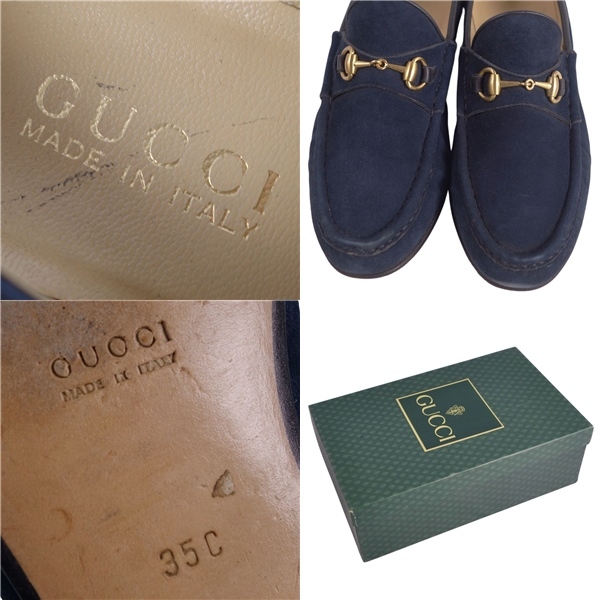 | 美品 Vintage グッチ GUCCI ローファー モカシン ホースビット スウェードレザー シューズ 靴 レディース 35C ネイビー |