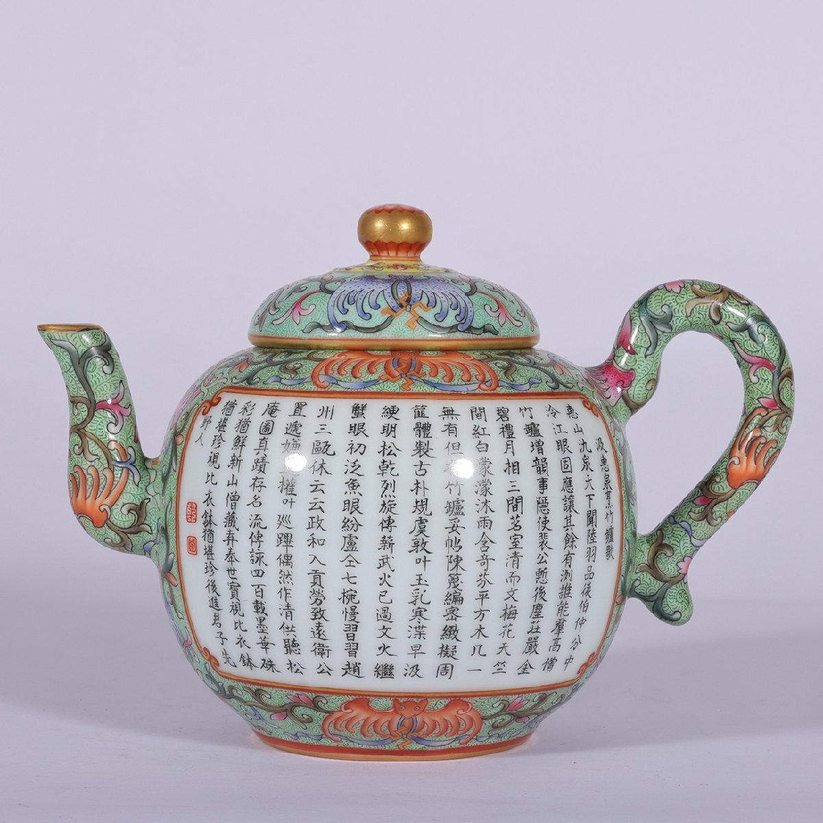 【安】清時代 大清乾隆年製 粉彩描金纏枝鳳尾草開窗山水人物題詩紋壺 共箱 唐瓷 古陶瓷 中国古美術 古董品 302 サイズ(約寸) |