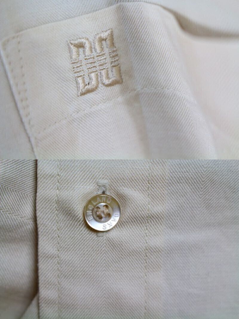 【表記サイズ】L 【カラー】暗いベージュ ※撮影時や画面の明るさにより色が変わる場合がありますのでご了承ください。 【実寸サイズ】肩幅 45㎝・着丈 74㎝・身幅 110㎝・袖丈 57㎝ ※平置き素人採寸の為、多少の誤差はご理解下さい。 【商品状態】 使用感があり画像5枚目のように目立たない程度のシミがありますがその他は大きな目立った汚れやダメージ見られません。 ※一人で状態確認をしています。見落とす場合もありますのでご了承下さい。 |